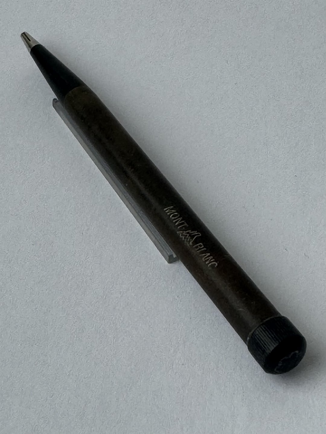 Lille sjælden Montblanc “hard rubber” pencil fra 1920’erne. I fin funktionsduelig stand. Uden skader - klar til at skrive. L. 10 cm