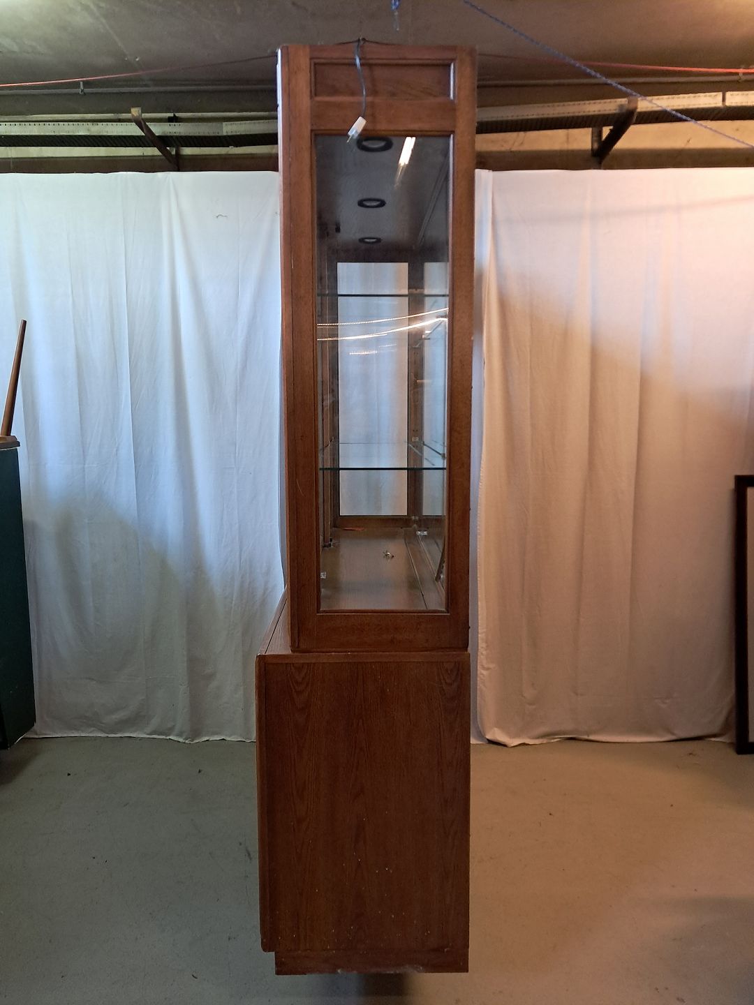 Amerikansk skab i fineret egetræ med glasoverdel, fra 1990erne.