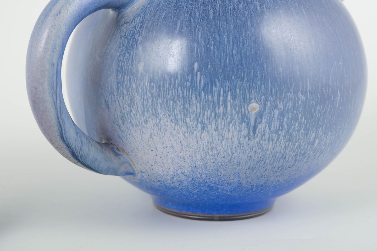 Sjælden, hånddrejet tekande i stentøj med karakteristisk blå glasur og elegant, organisk formtypisk for Fribergs tidlige studioarbejder.