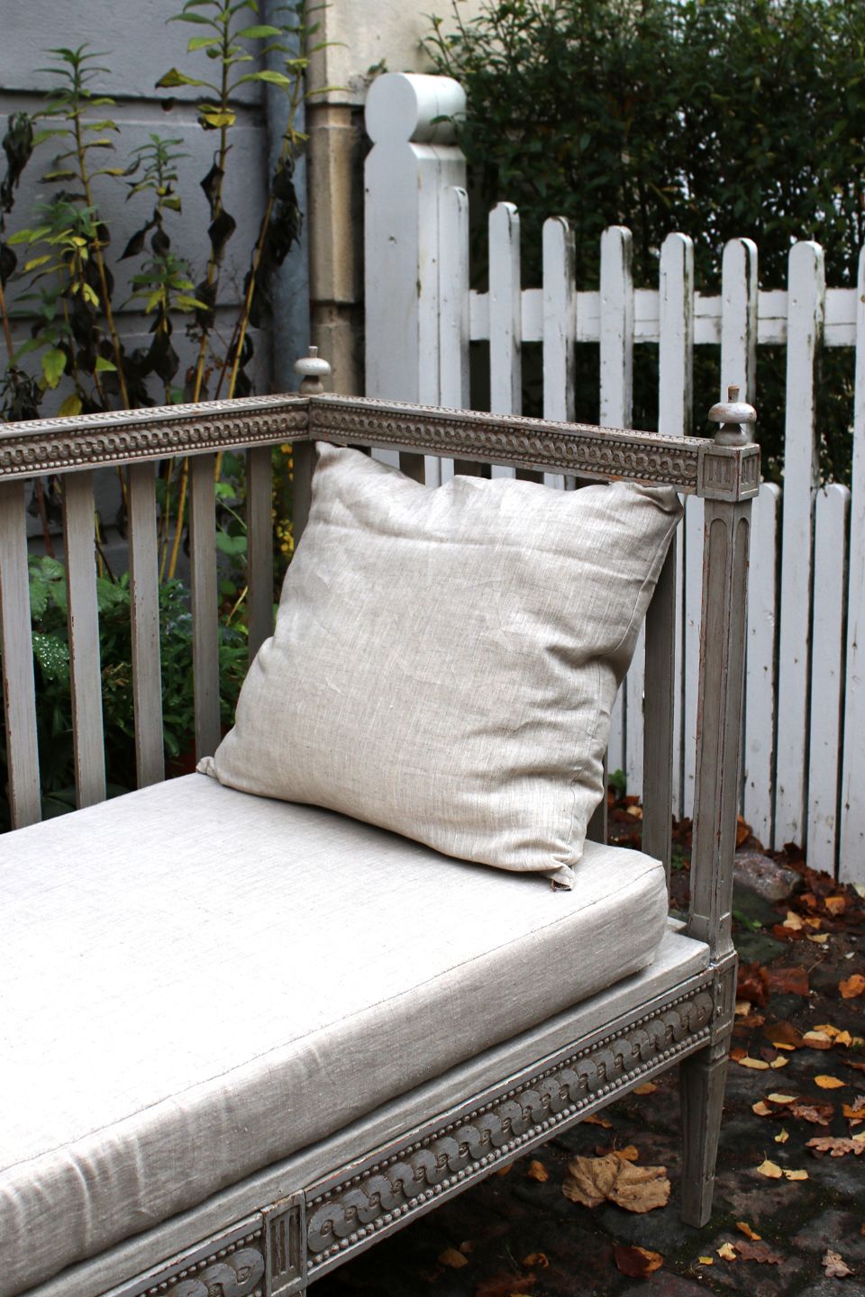 med fin patina. Sofaen har siddehynde i hørstof og 3 hørpuder.