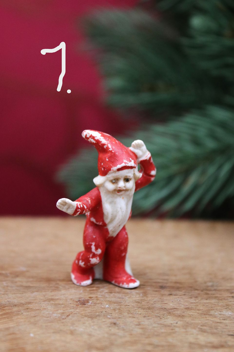 Små gamle biskuit nisser med fin patina...