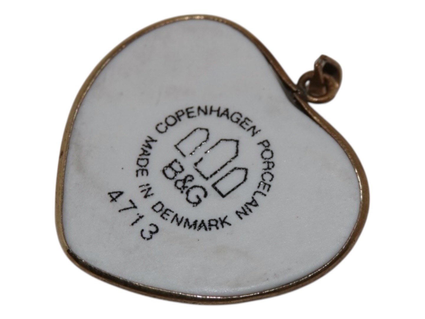 Bing & Grøndahl Musselmalet / Blåmalet, hjerte vedhæng med messingkant.