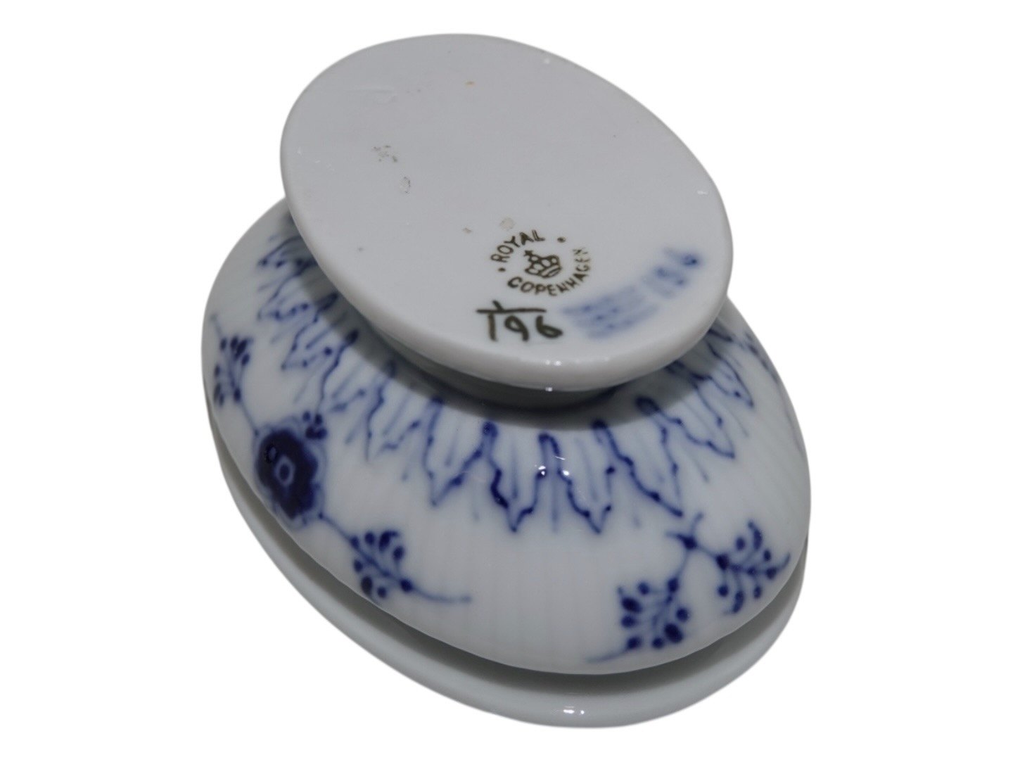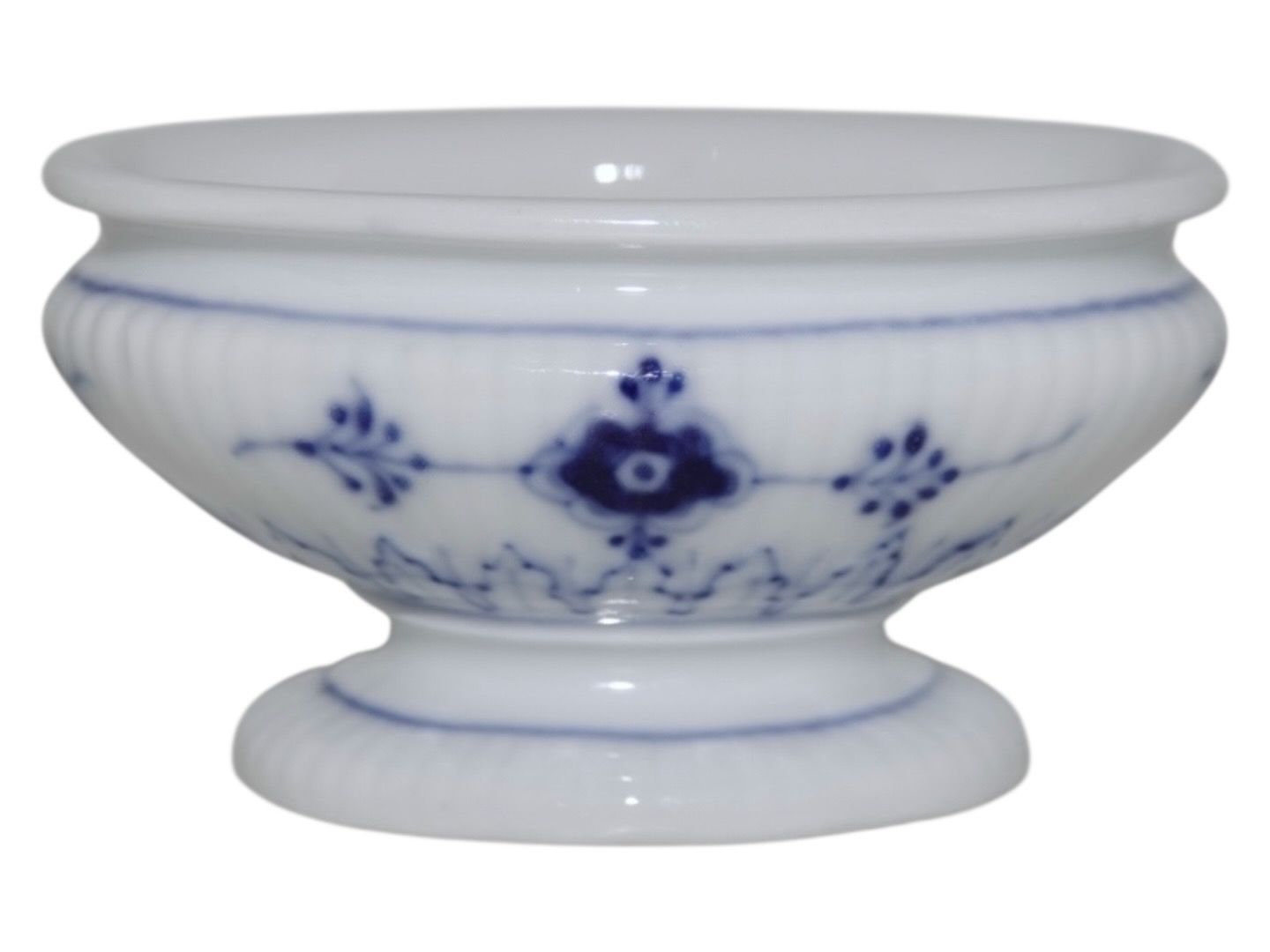 Royal Copenhagen Musselmalet Riflet, sjældent saltkar på fod.