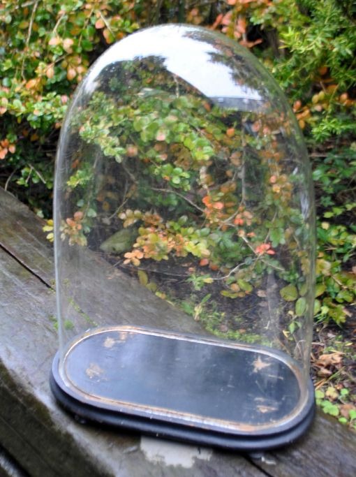 Französische Uhr Glasglocke auf ovalem Holzsockel, 19. Jahrhundert.