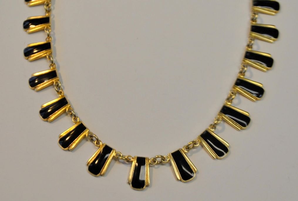 Volmer Bahner & Co, Kopenhagen (1962–1987): Halskette aus vergoldetem Sterlingsilber mit Emaille. Gestempelt. Länge: 39 cm.