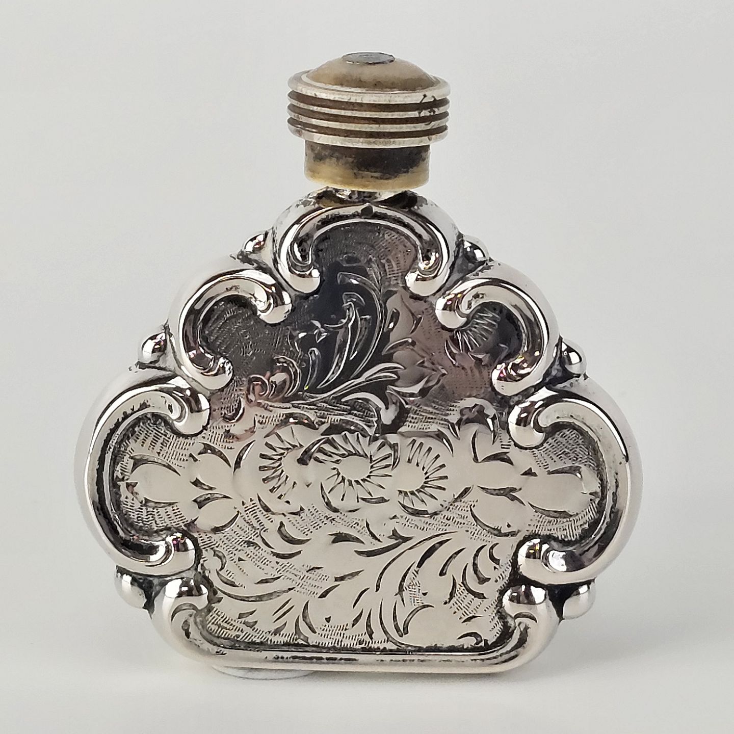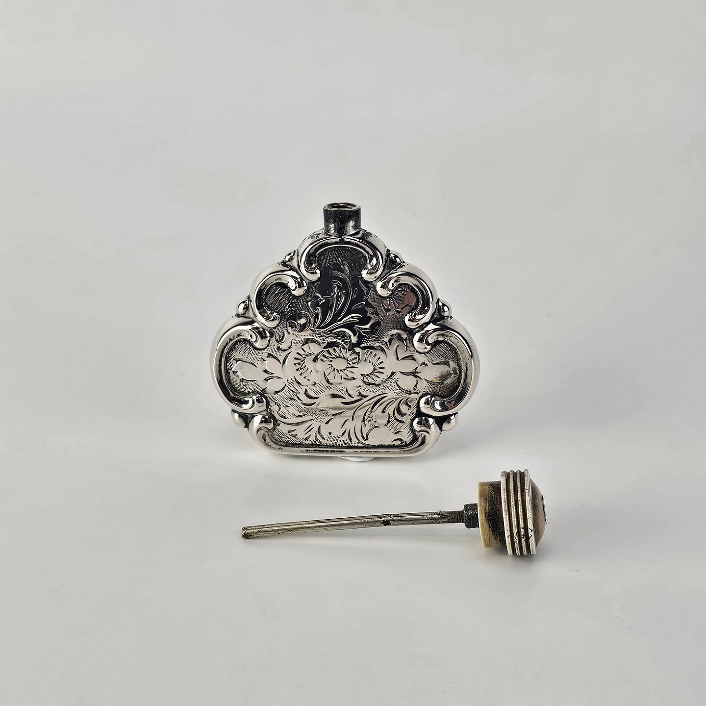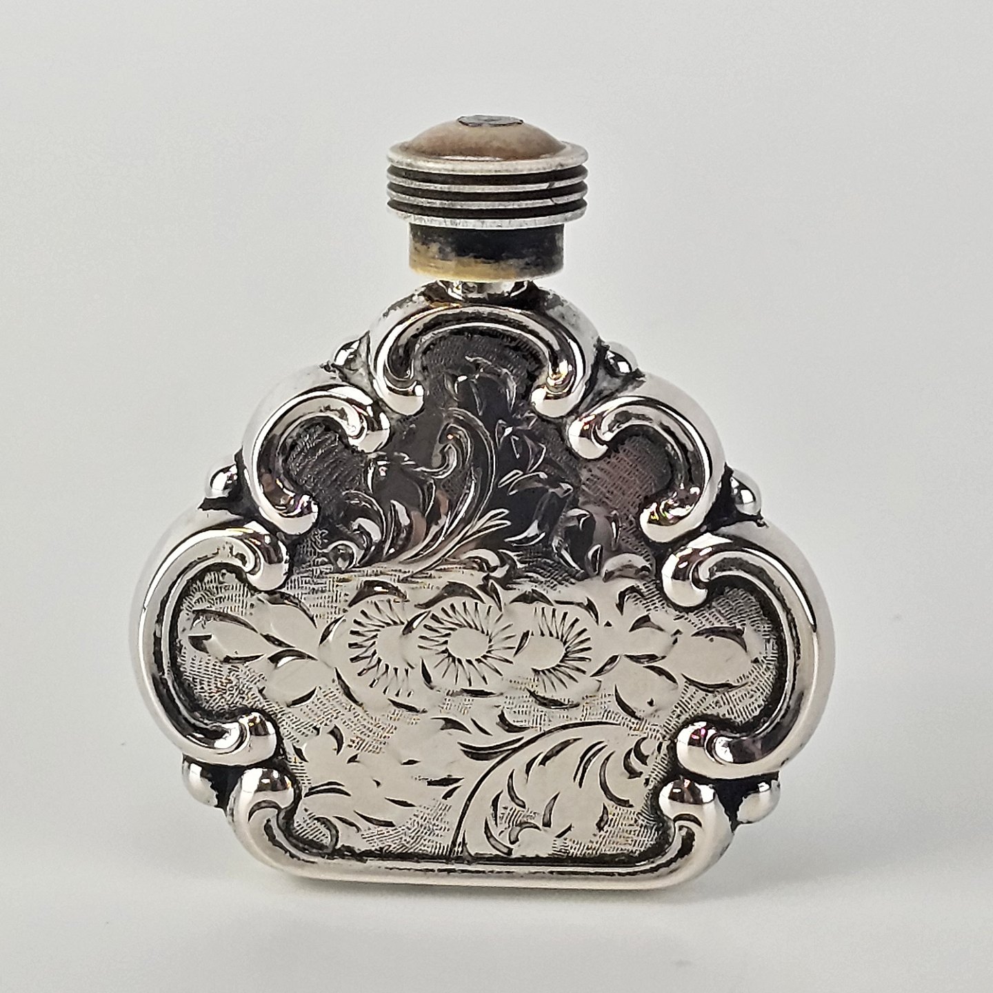 Parfumeflaske flakon i sølv 925S med blomstermotiv