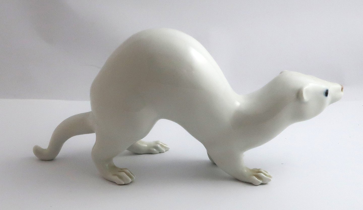 Royal Copenhagen. Porzellanfigur. Weißes Hermelin. Modell 4562. Länge 24 cm. (1. Wahl)
