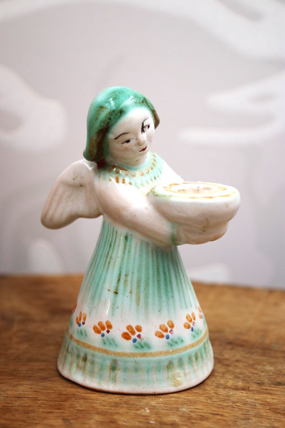 Titelseite >> Antique Portal Kategorien   >>  Keramik und Steinzeug - älter und antik   >>  Andere   >>  Intern nr.: L.Hjorth grøn engel H: 9cm.  Senden uns ein e-post