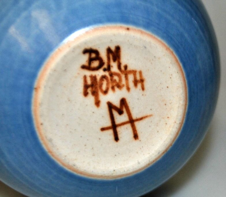 Keramik von Hjorths, 20. Jahrhundert. Bornholm, Dänemark. Einzigartige Schale. Steinzeug. Mit seitlicher Dekoration. Dunkelblaue Glasur. Gestempelt: BM, Hjorth und Monogramm M. Höhe: 8 cm.