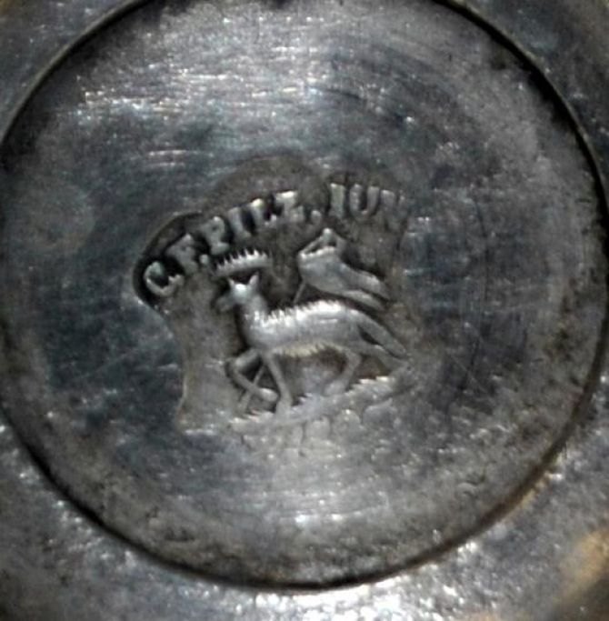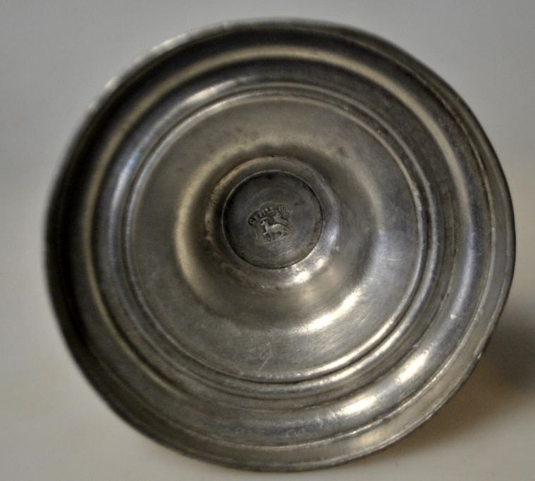 Empire-Kerzenleuchter aus Zinn, 19. Jahrhundert. Gestempelt: CF Pilz, jun. Höhe: 17 cm.