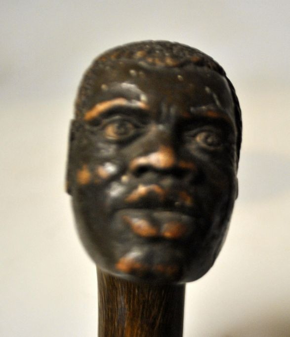 Spazierstock aus Holz mit geschnitztem Gesicht, 19. Jahrhundert.