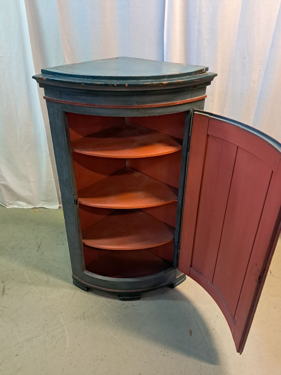 Malet hjørneskab i massivt fyrretræ, fra 1900erne.