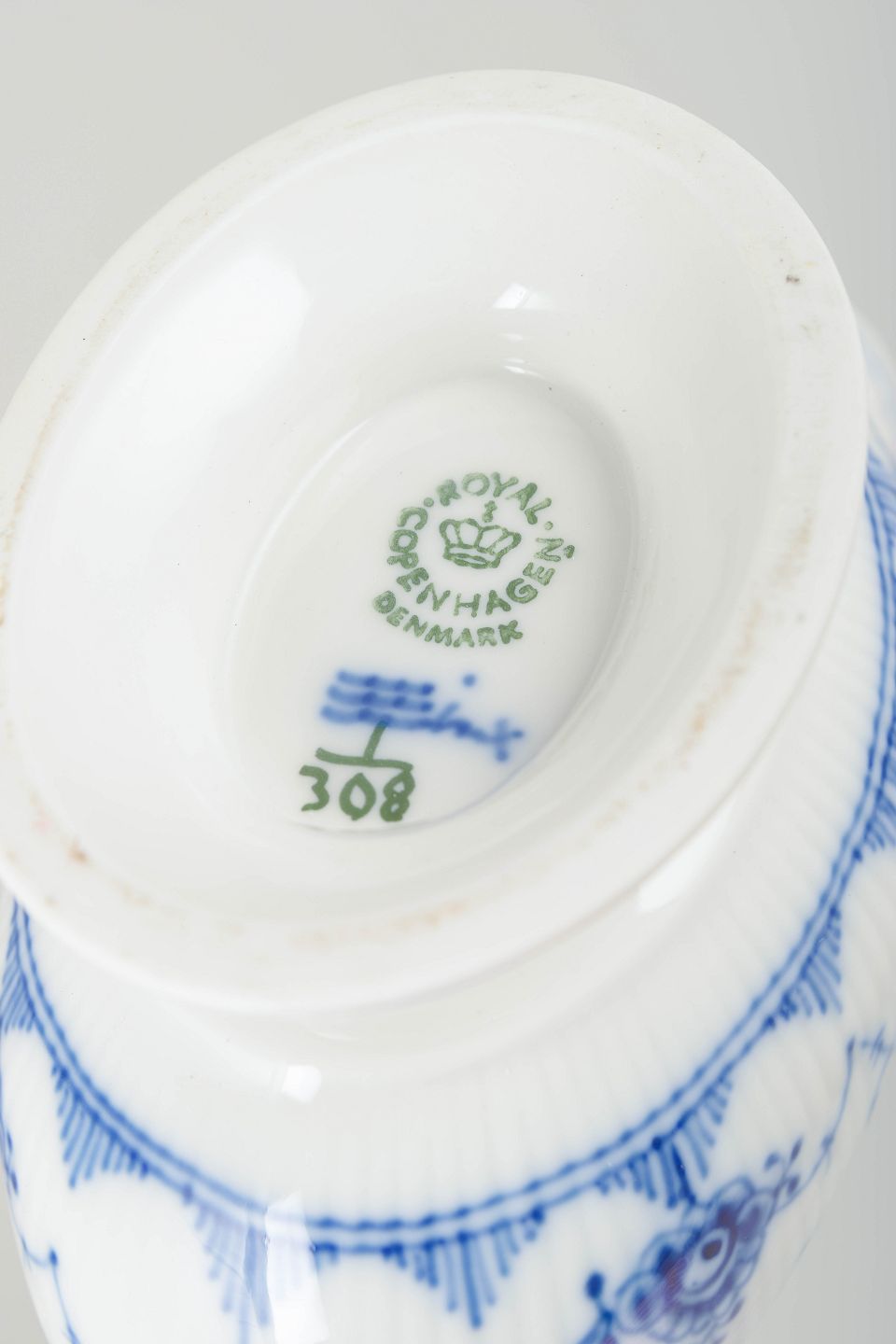 Text zugänglich auf Dänische: Royal Copenhagen musselmalet riflet, model 1/308 saucekande.
