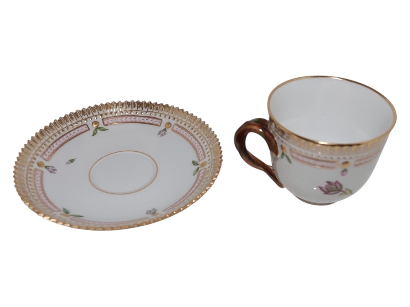 Royal Copenhagen Flora Danica, small demitasse cup with matching saucer.