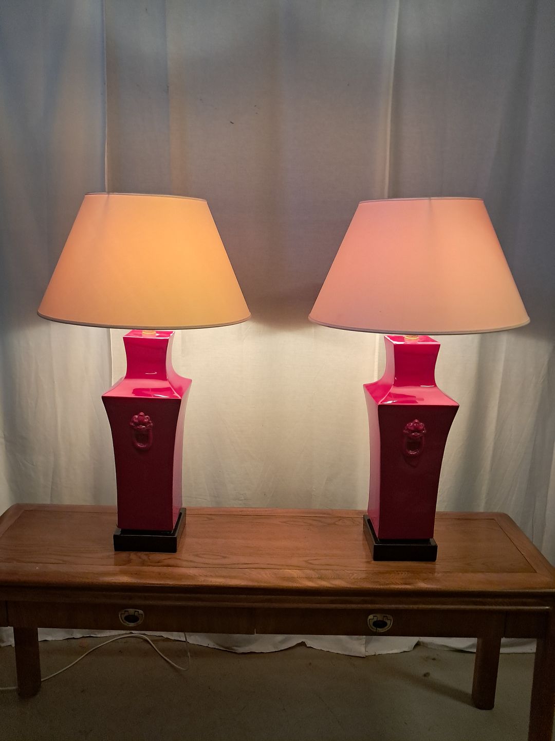 2 Bordlamper i pocelæn med skærme, fra 2000erne.