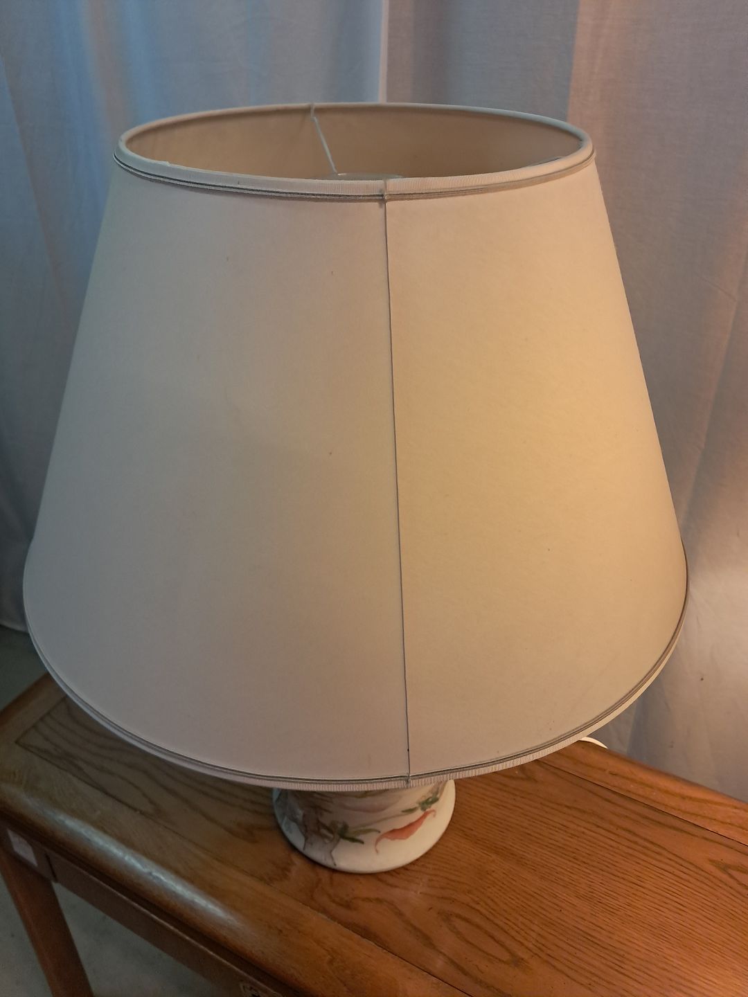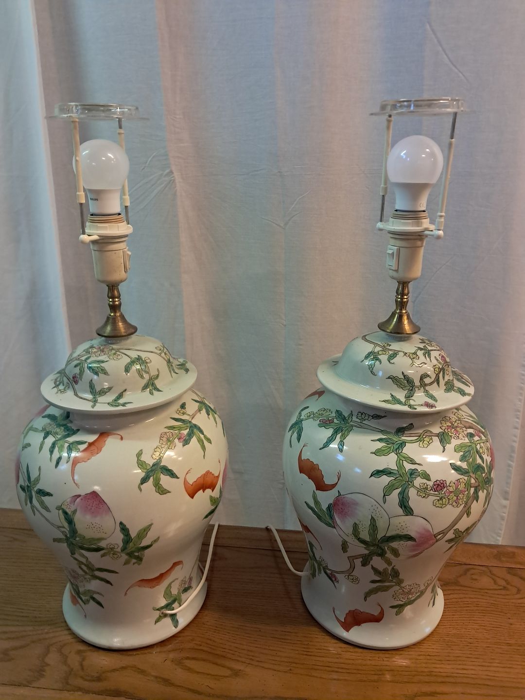 2 Asiatiske bordlamper i pocelæn med skærme, fra 1990erne.