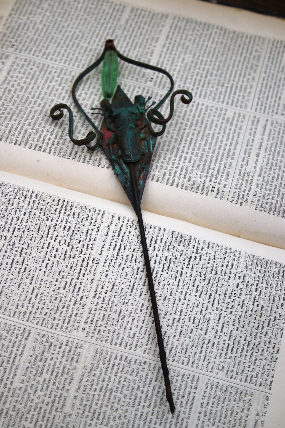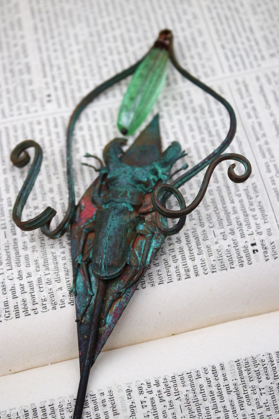 Unika blomsterpind i kobber med glas perle og insekt lavet af smykke kunstneren Torben Hardenberg...