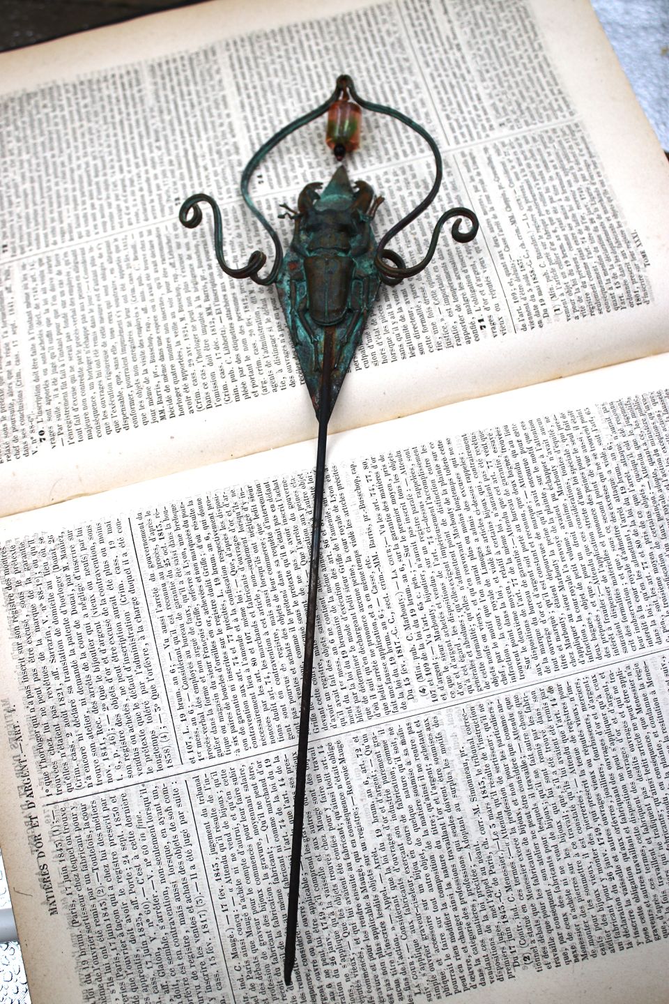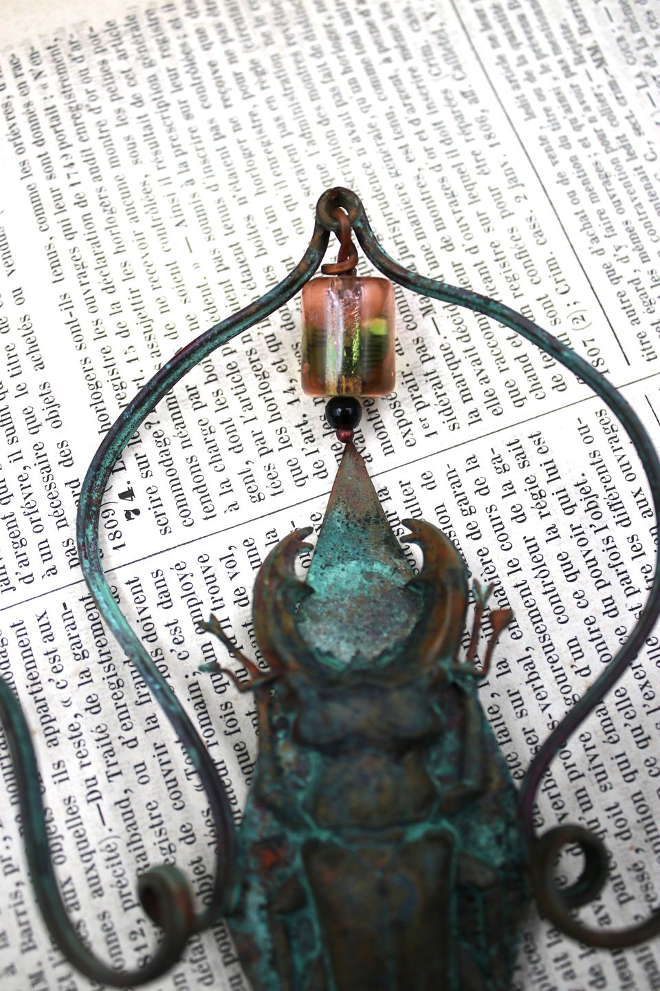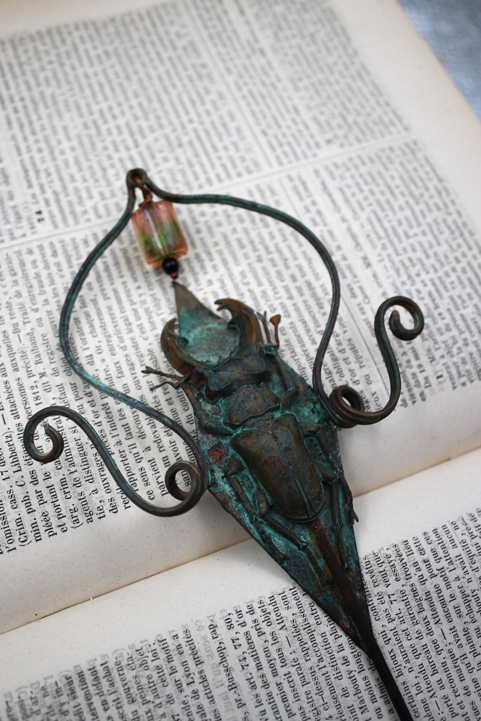 Unika blomsterpind i kobber med glas perle og insekt lavet af smykke kunstneren Torben Hardenberg...