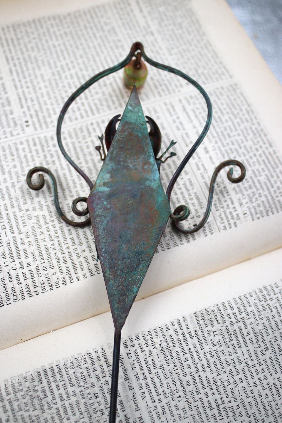 Unika blomsterpind i kobber med glas perle og insekt lavet af smykke kunstneren Torben Hardenberg. Højde: 31cm.