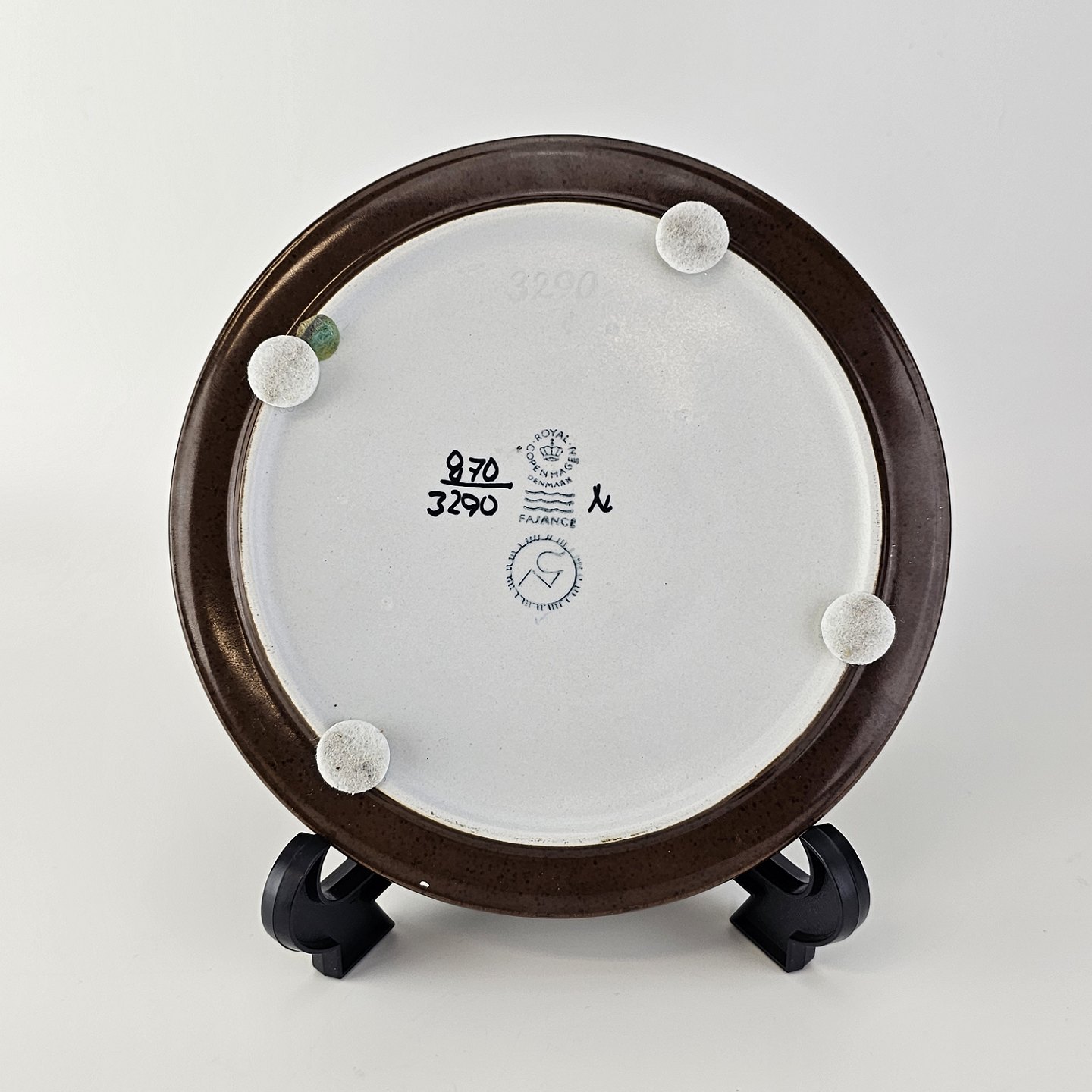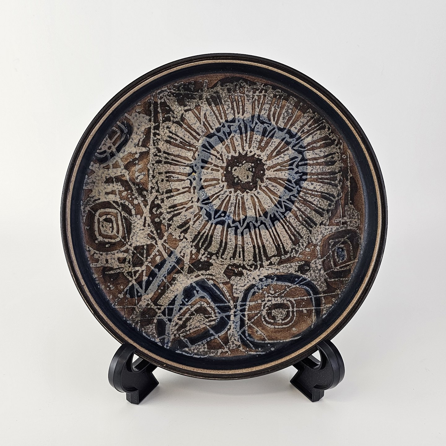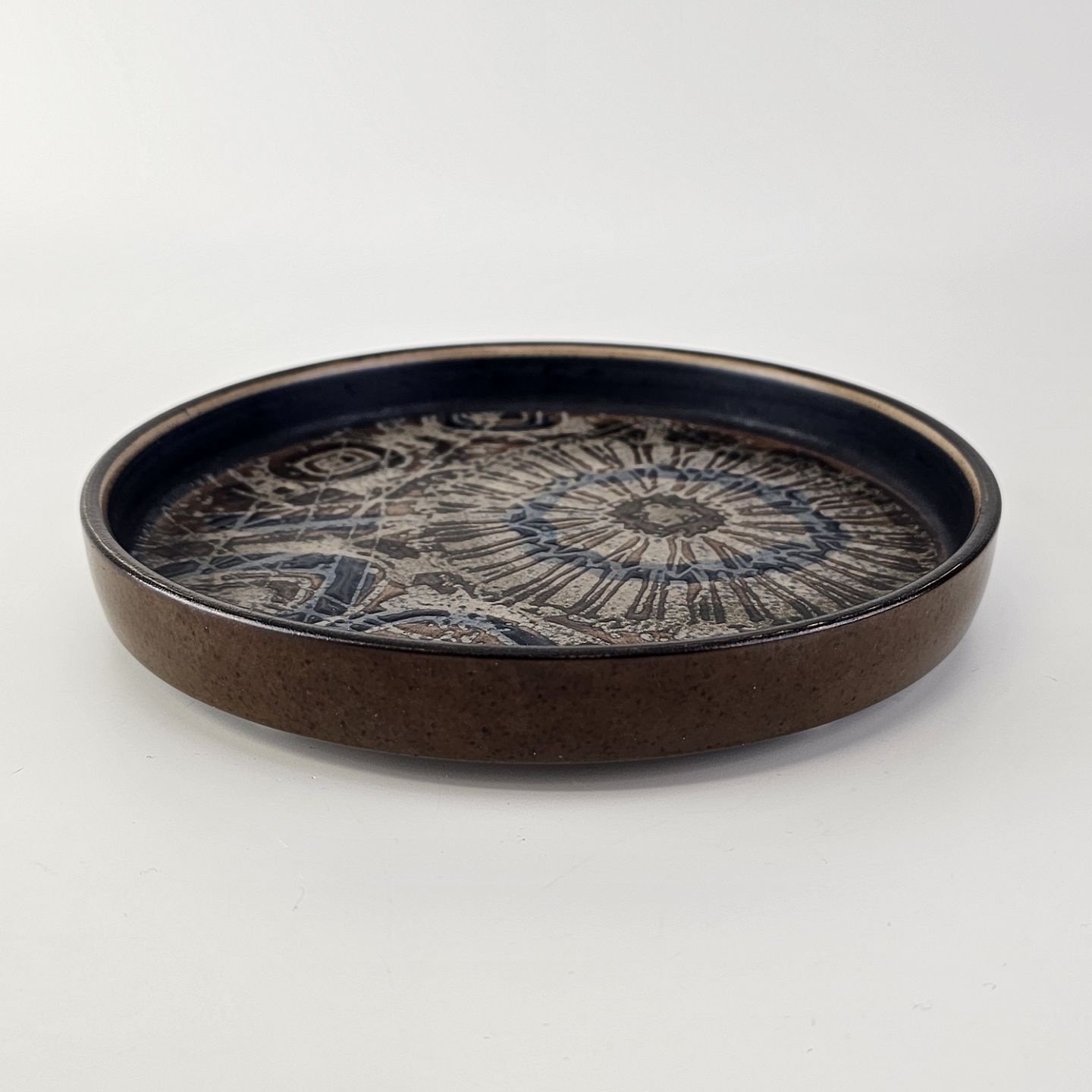 Flad rund skål i fajance fra Baca serien med mønster i brune nuancer