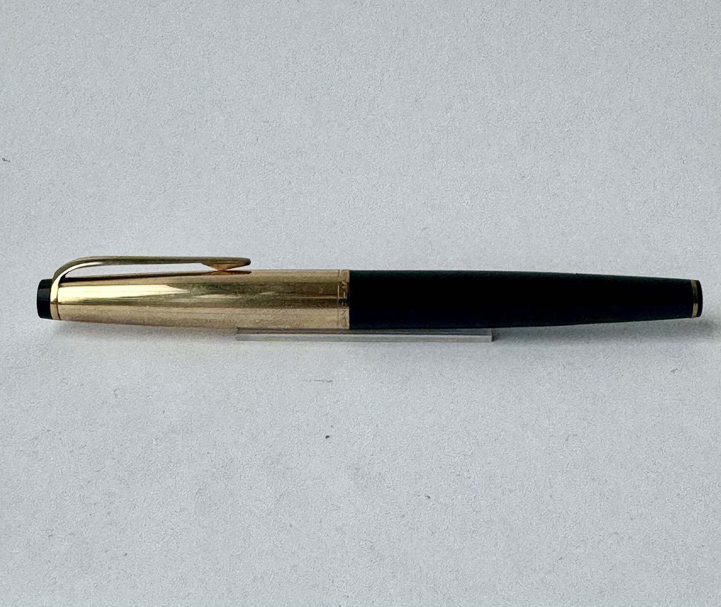 Black Montblanc Meisterstück no. 72 fountain pen With gold double cap. Appears in good and functional condition. Working with piston filler. Made in Germany around 1970.