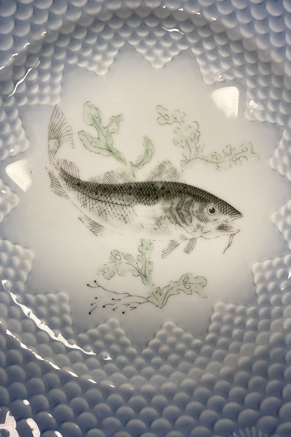 Bing og Grøndahl Blå Tone Fisketallerken Motiv 6 Torsk No. 716 - SKÅRET/SLIDT
