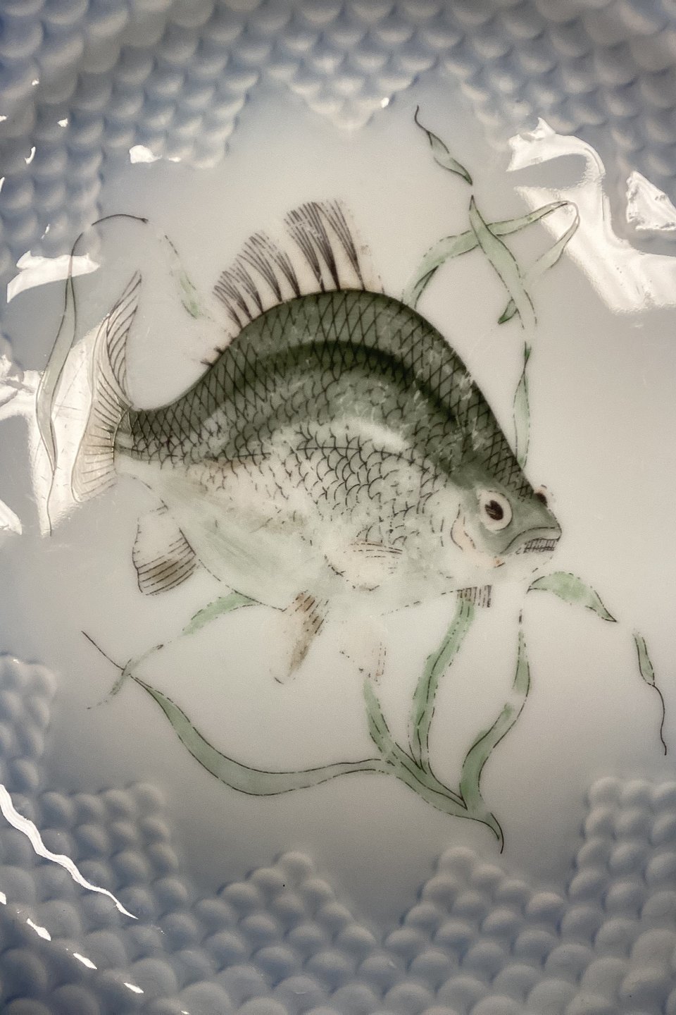 Bing og Grøndahl Blå Tone Fisketallerken Motiv 7 Karudse No. 716 - SKÅRET/SLIDT
