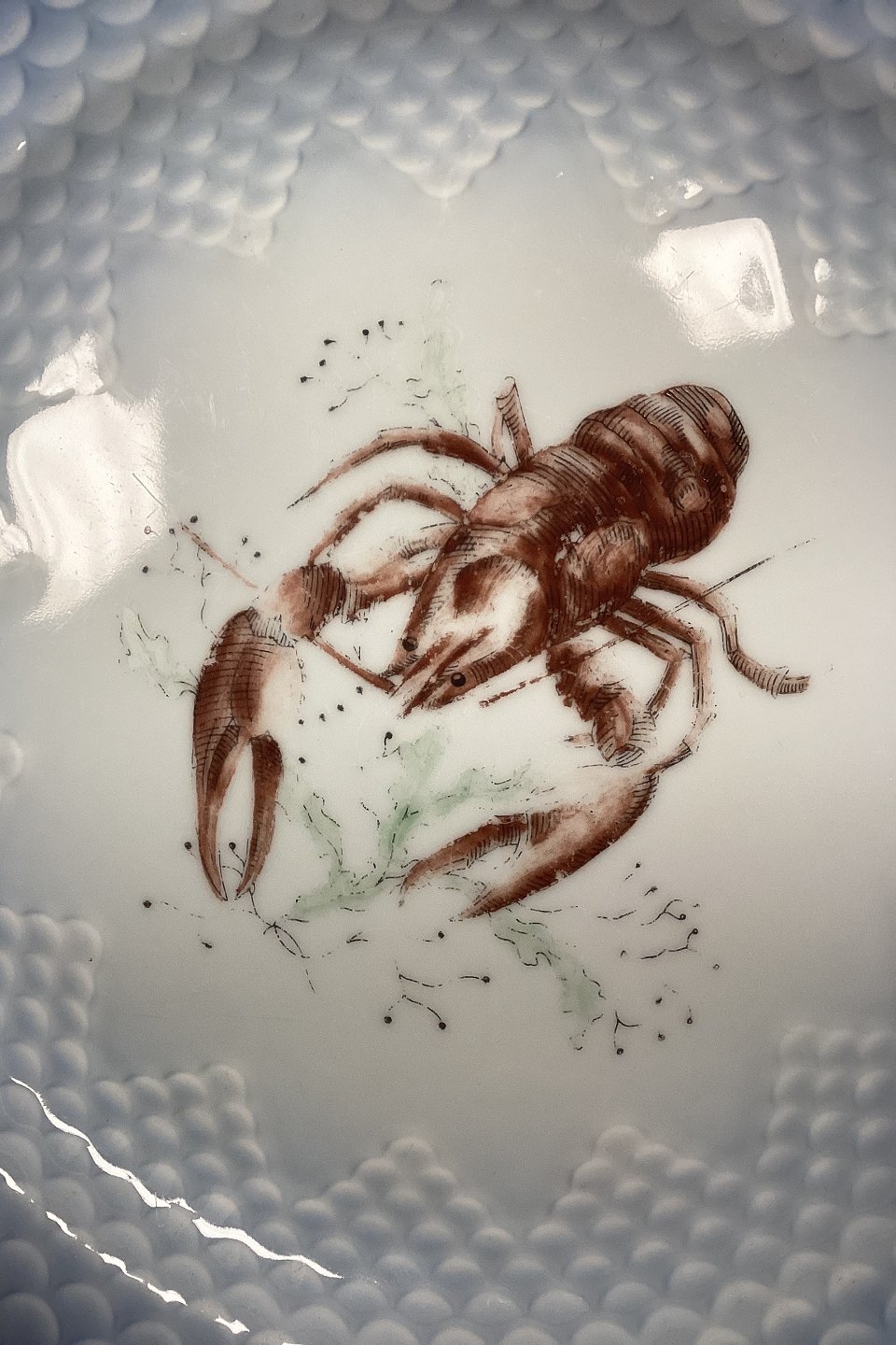 Bing and Grøndahl Blue Tone Fish Plate motif 11 Crab No. 716 - CHIPED/WORN