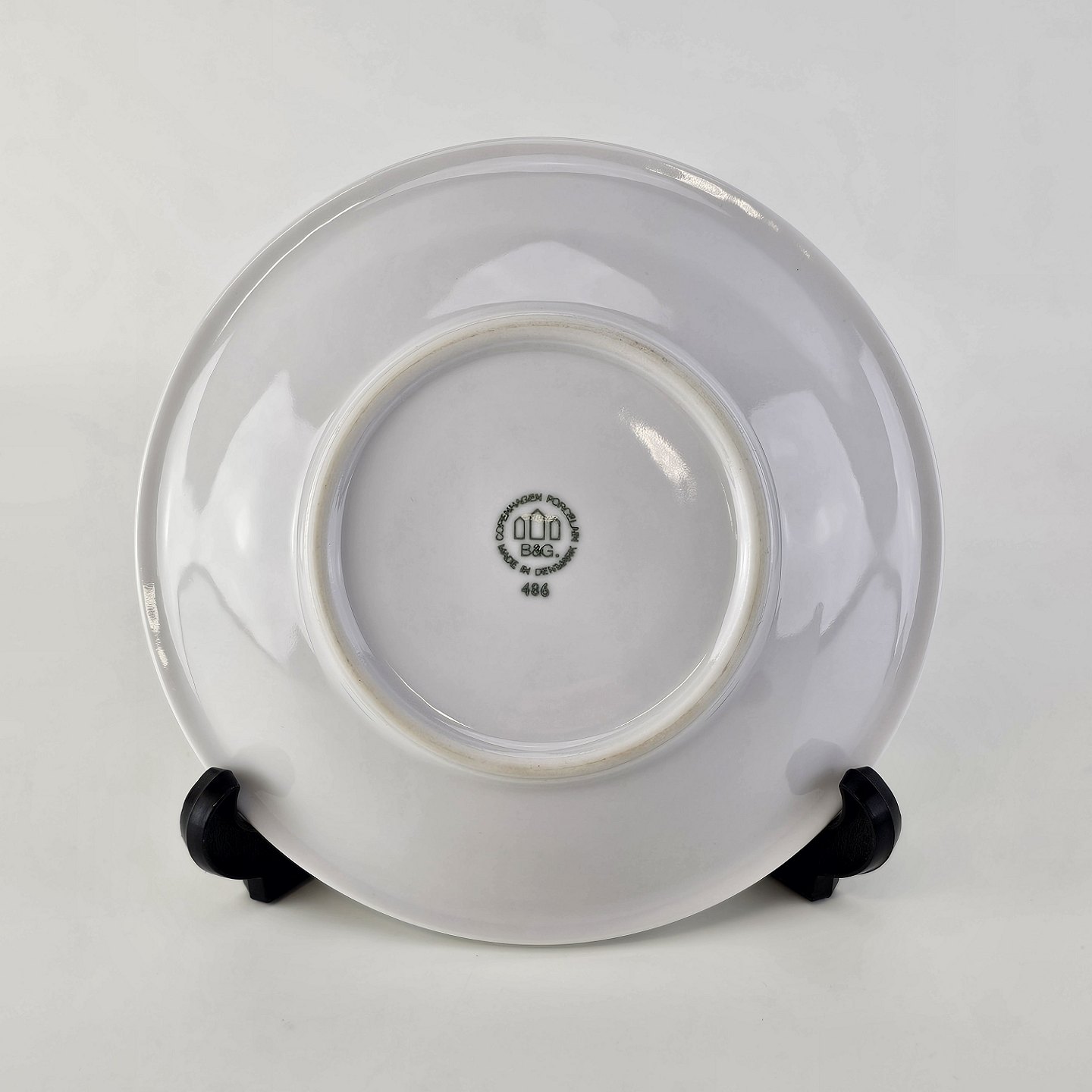 Kop med høj hank og underkop i glat hvidt porcelæn