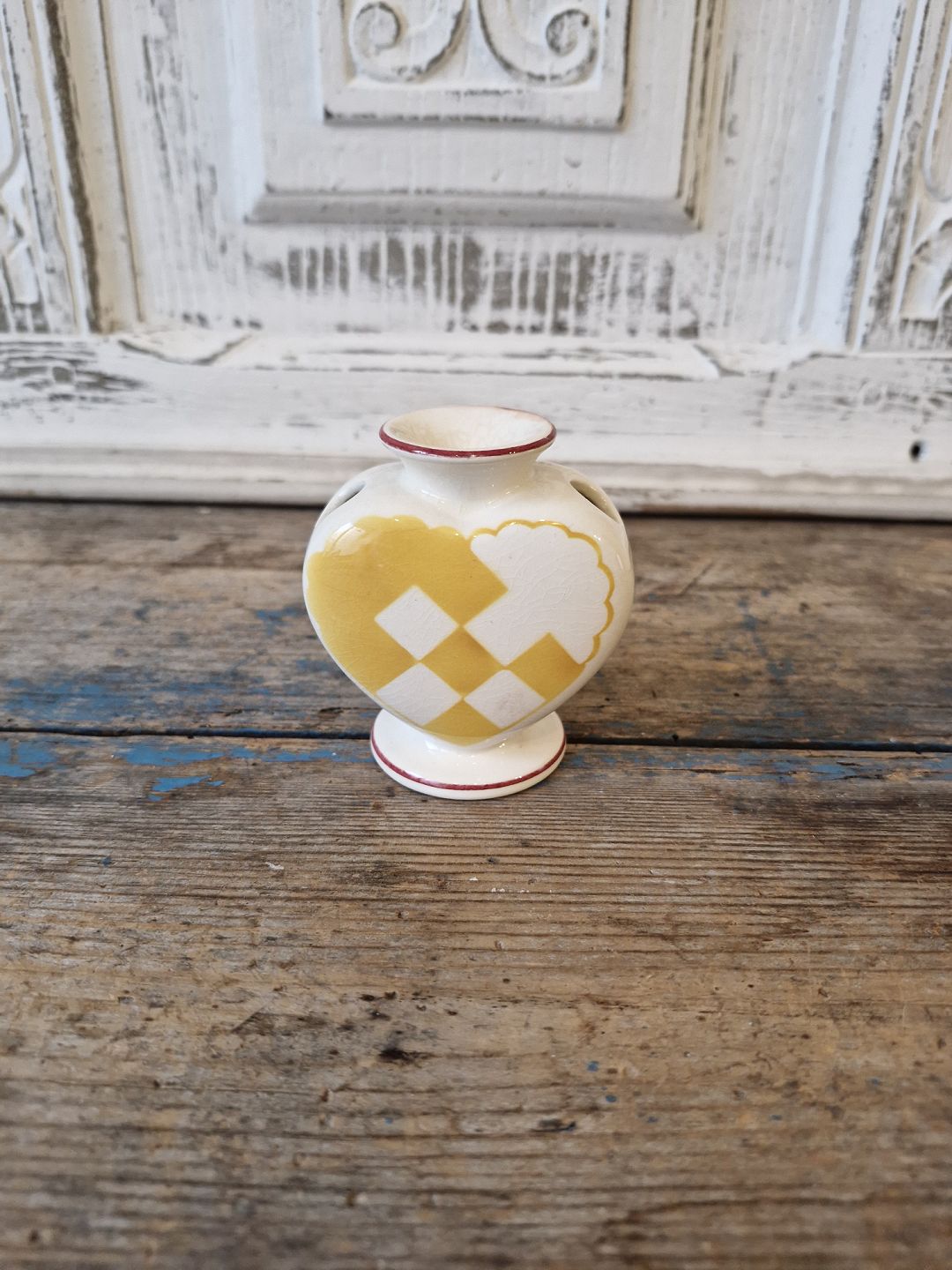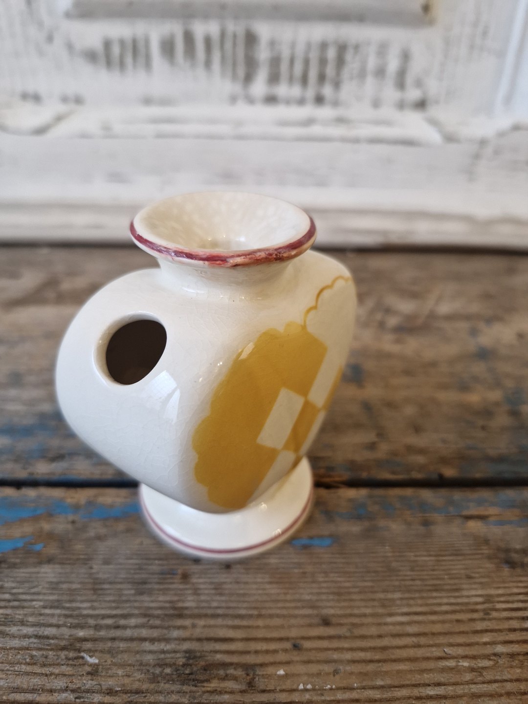 Fremstår med små krakeleringer samt en reparation på kanten - se billed