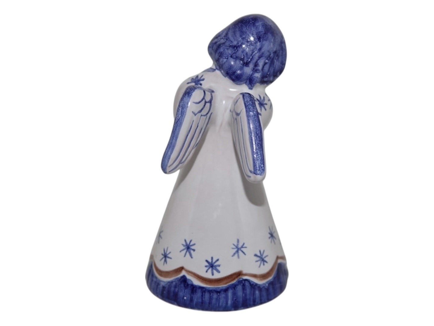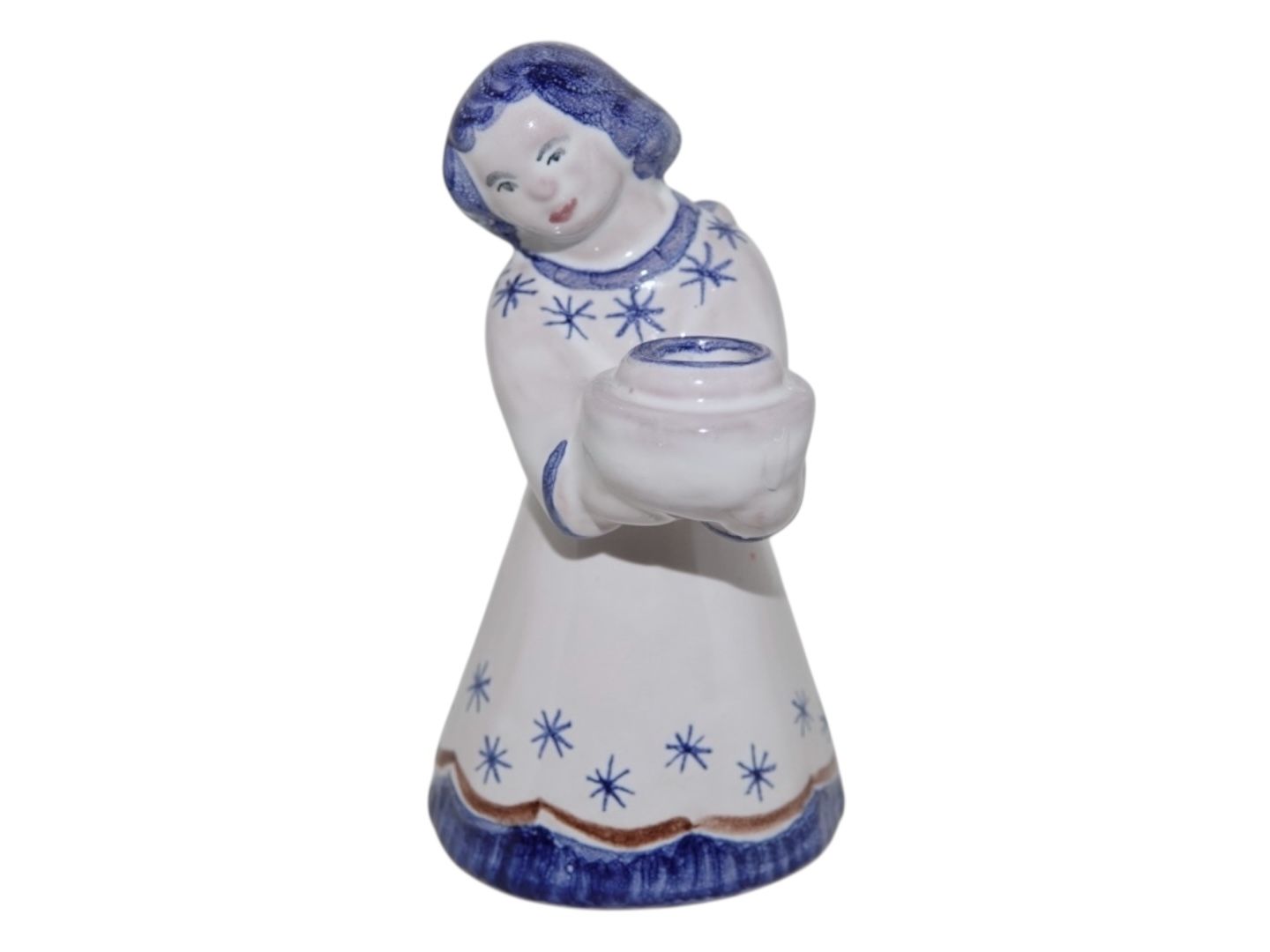 Hjorth art pottery, angel figurine / candle light holder. Blue and white color.