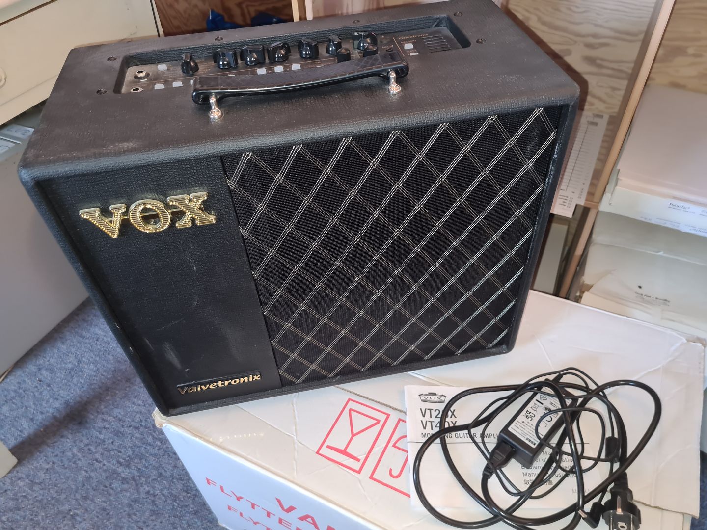 Text zugänglich auf Dänische: VOX Guitarforstærker model VT40X. Testet og virker. Uden synlige brugsspor. Manual og strømforsyning medfølger.