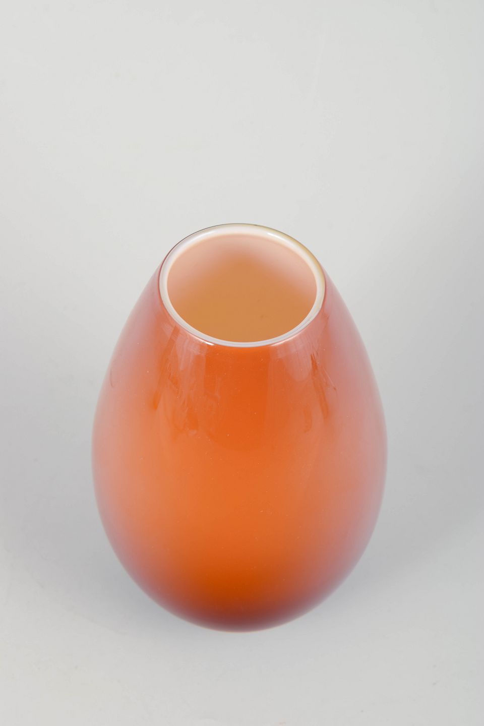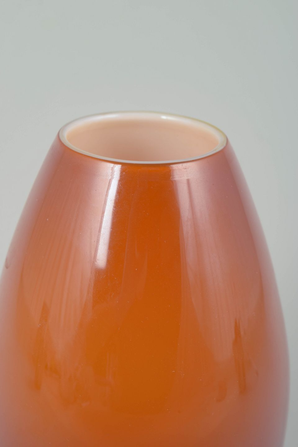 Håndblæst vase i varm orange tone fra Peter Svarrers velkendte “Cocoon”-serie for Holmegaard. Den bløde, ovale form og den let transparente farvegradiering giver vasen et moderne og skulpturelt udtryk.