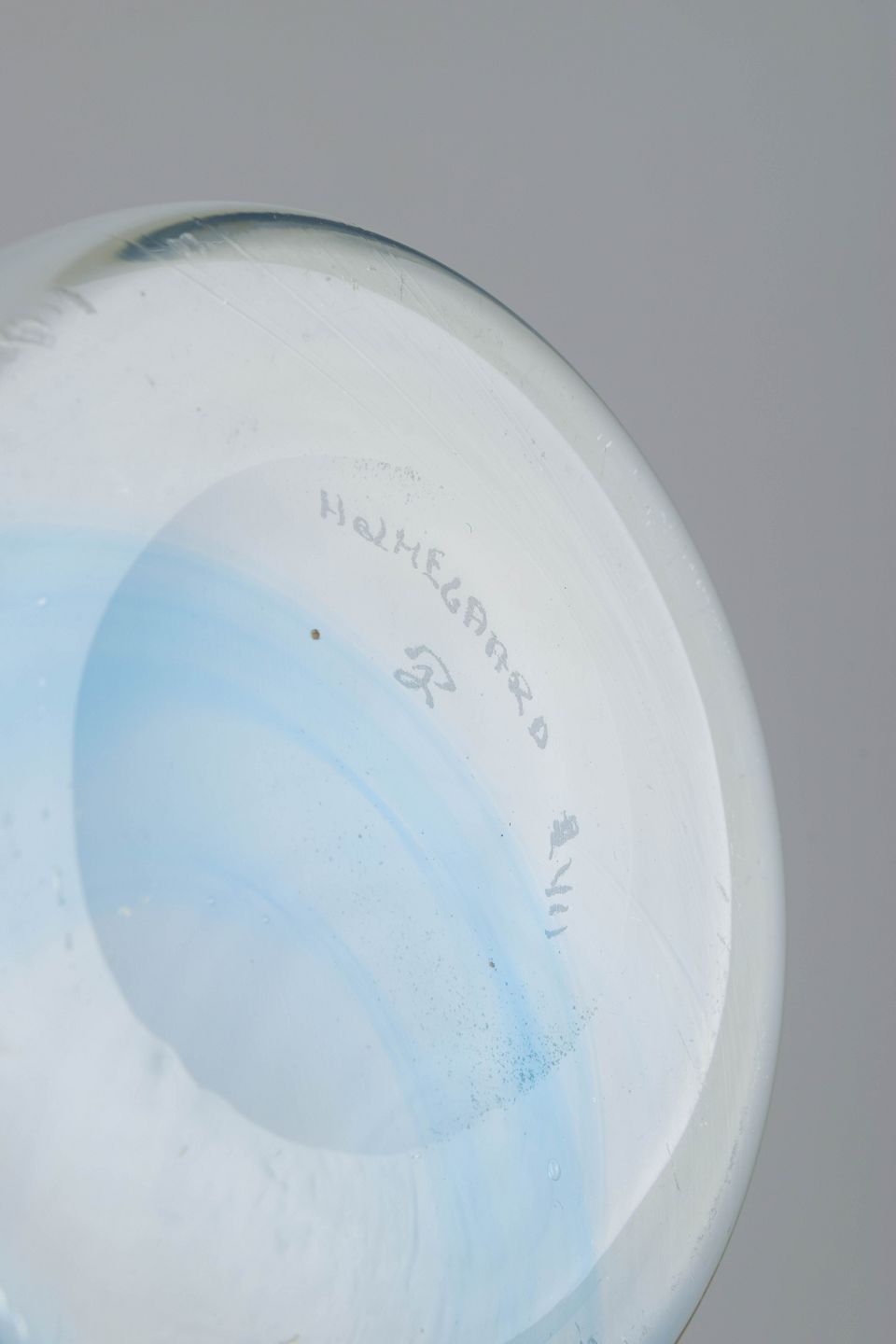 Per Lütken (1916–1998) var Holmegaards hoveddesigner gennem årtier og skabte nogle af værkets mest ikoniske former. I 1960’erne og 70’erne eksperimenterede han med farver og indsmeltede dekorationer, hvor hvert stykke fremstår som et lille kunstværk. Hans arbejde er i dag højt værdsat for den tekniske præcision, kunstneriske frihed og det tidløse formsprog.