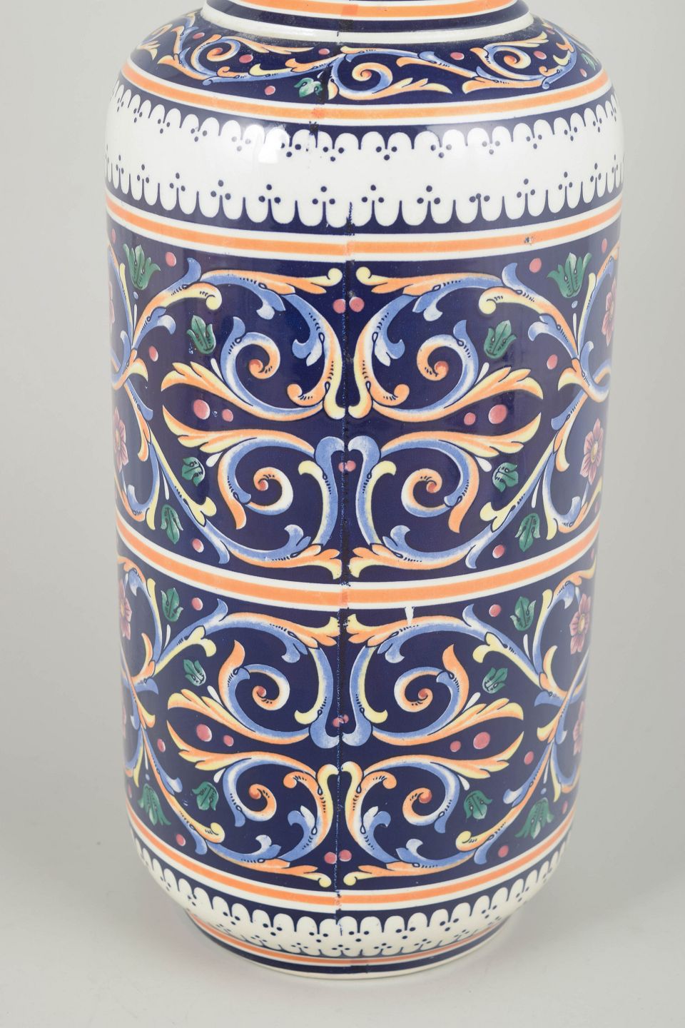Majolica-dekoration i Italien har gennem århundreder kombineret stærke farver, ornamentale mønstre og historiske inspirationskilder. I det 20. århundrede tog mange værksteder decalcomania-teknikken i brug for at opnå meget detaljerede og gentagelige motiver, som efterfølgende blev fastbrændt ved lav temperatur. Resultatet er dekorative genstande, der viderefører den klassiske æstetik i en moderne produktionsform.
