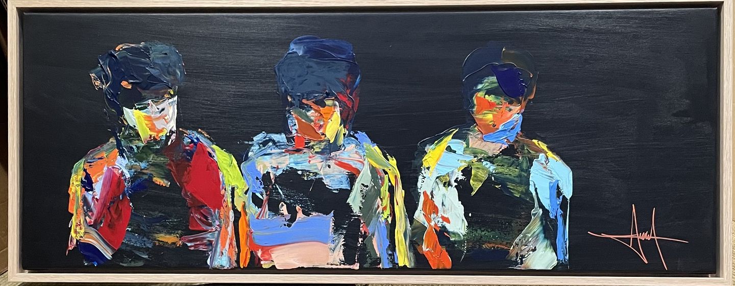 Text zugänglich auf Dänische: Elegant unika maleri af multikunstneren Henrik Busk Andersen, monteret i svæveramme fra Bogø Design.
