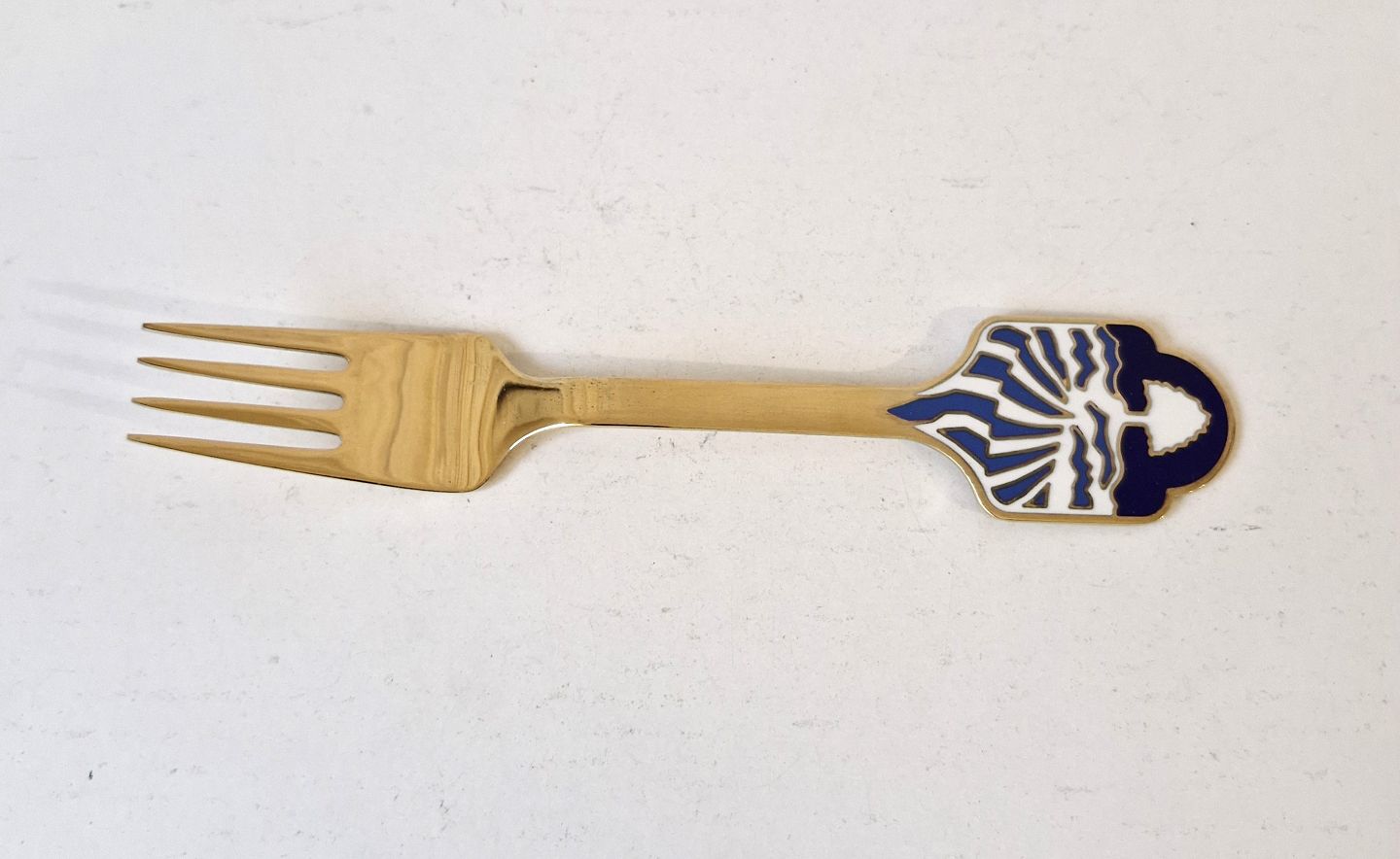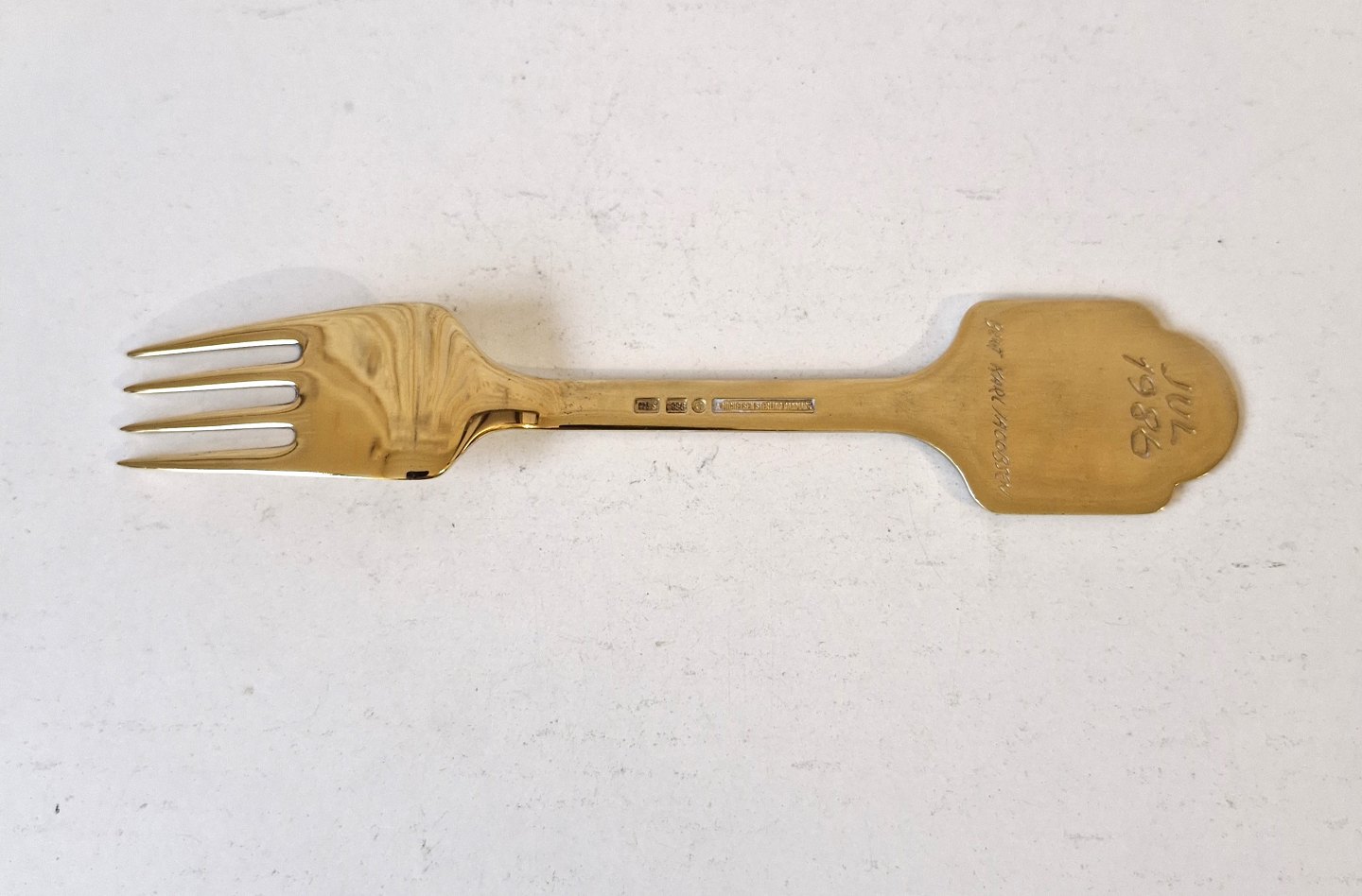 Text zugänglich auf Dänische: A.Michelsen julegaffel i forgyldt sterlingsølv og emalje fra 1986