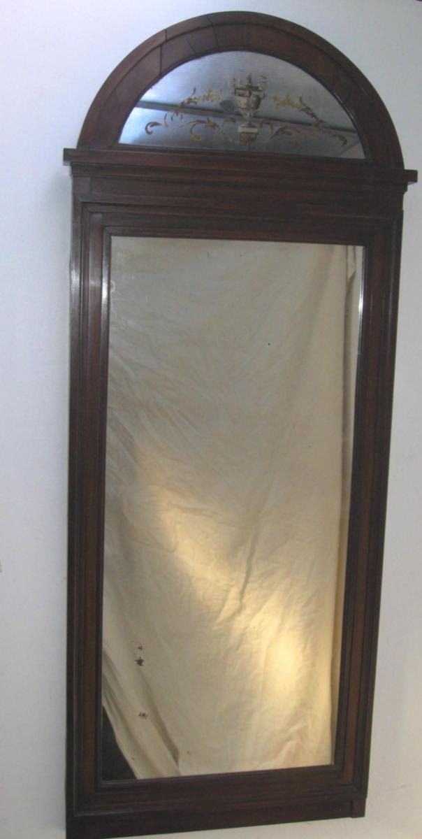 Spiegel, mahognifinert mit  Bördeln, Louis XVI, 1770 - 85. H:. 125 cm. B:. 54 cm. Vermutlich aus Holstein. Provenienz: Herrenhaus in Nordjütland.