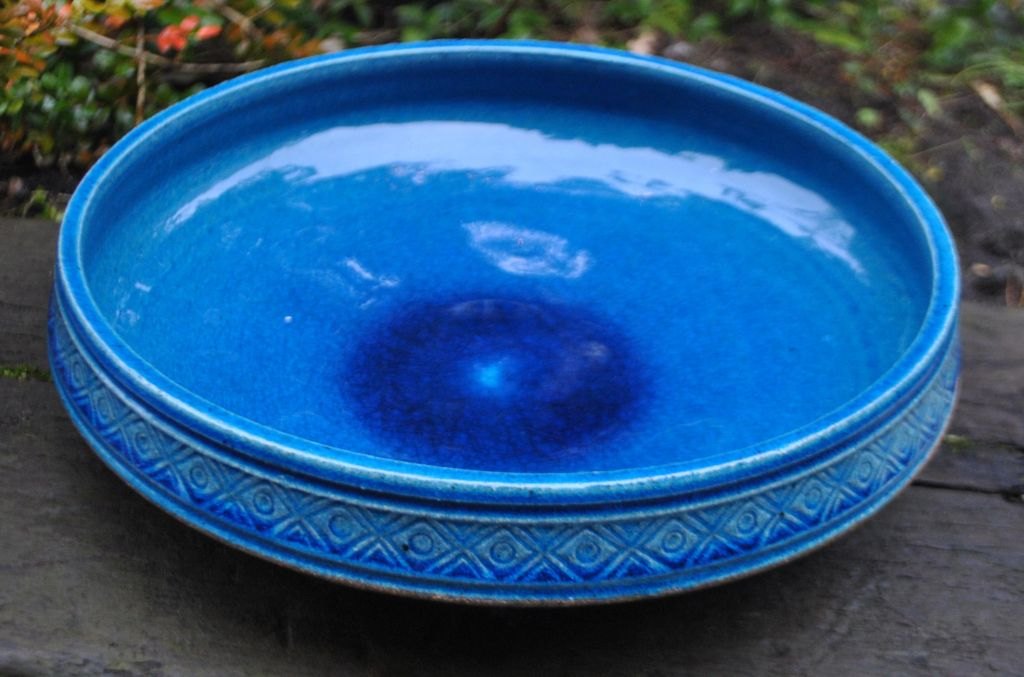 Kähler, Nils Joakim (1906–1979): Große Schale. Hergestellt für HA Kähler, Næsteved. Türkisfarbene Glasur. Mit Randdekor. Signiert. Höhe: 9,5 cm. Durchmesser: 31 cm.