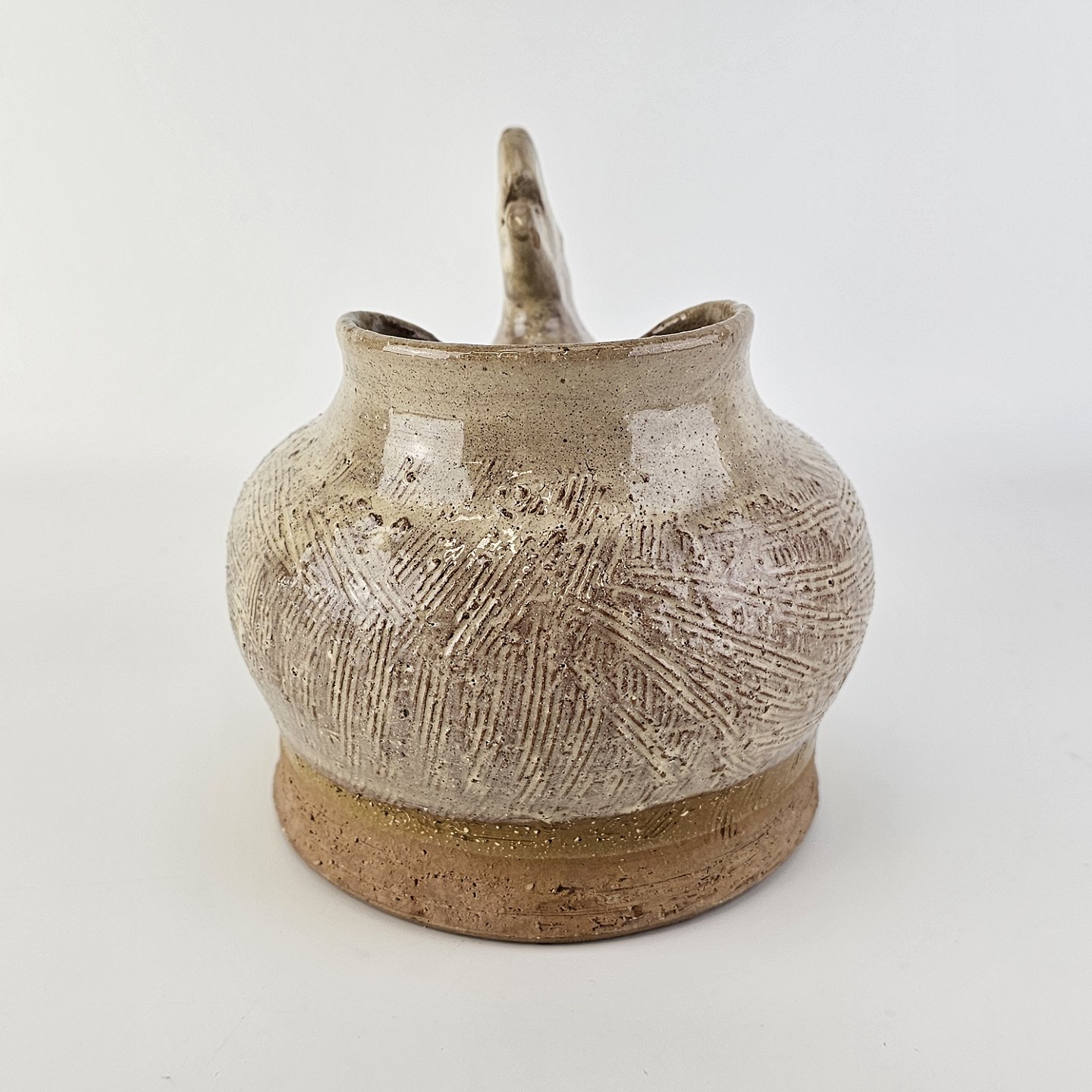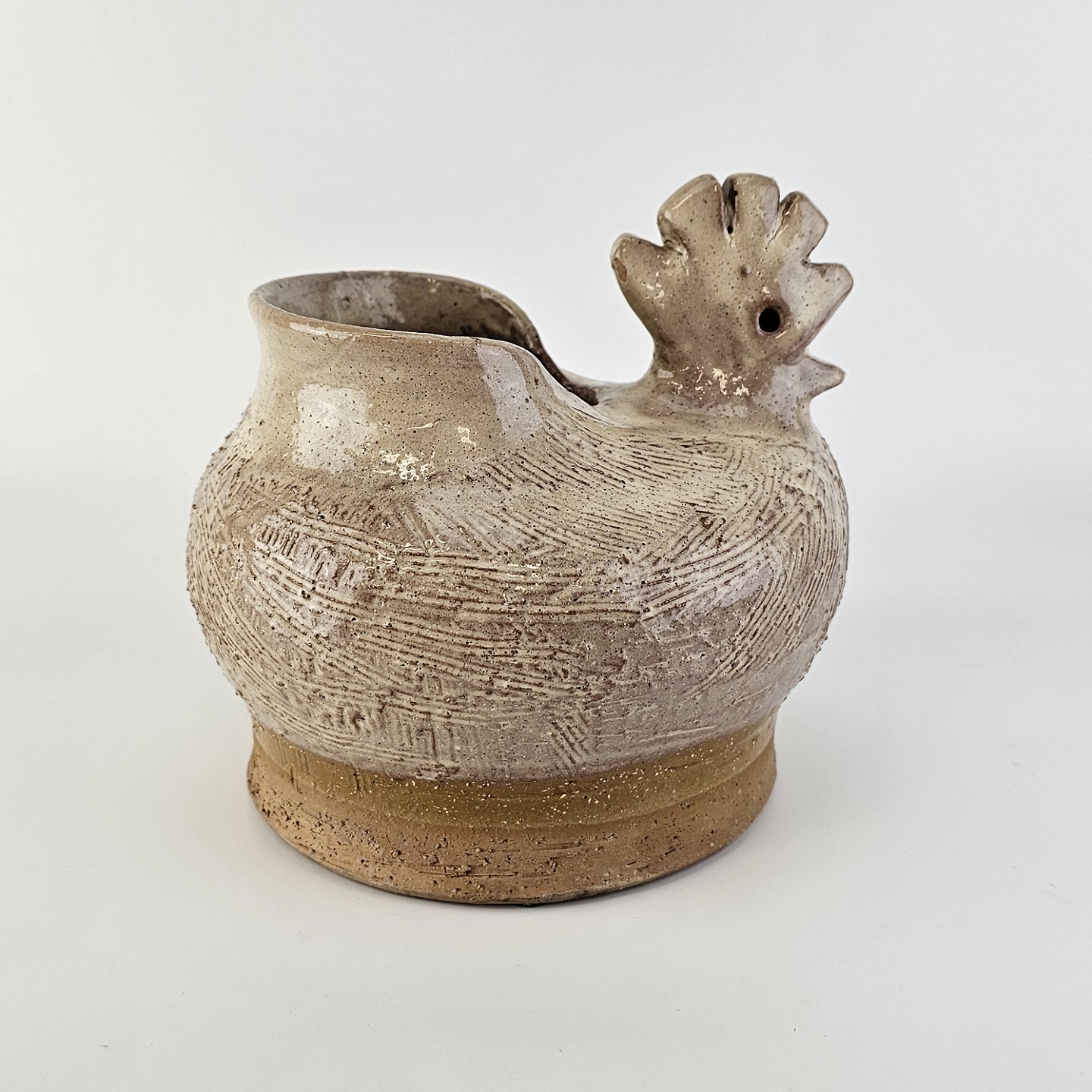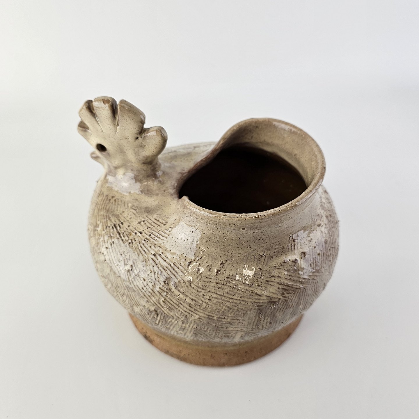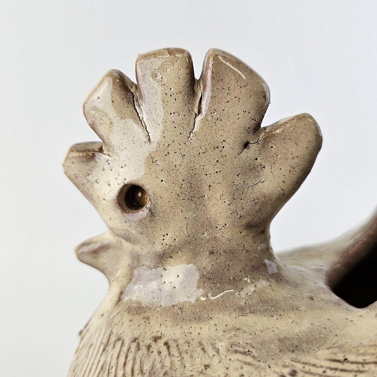 Vase med form som en høne i brunlig glaseret keramik