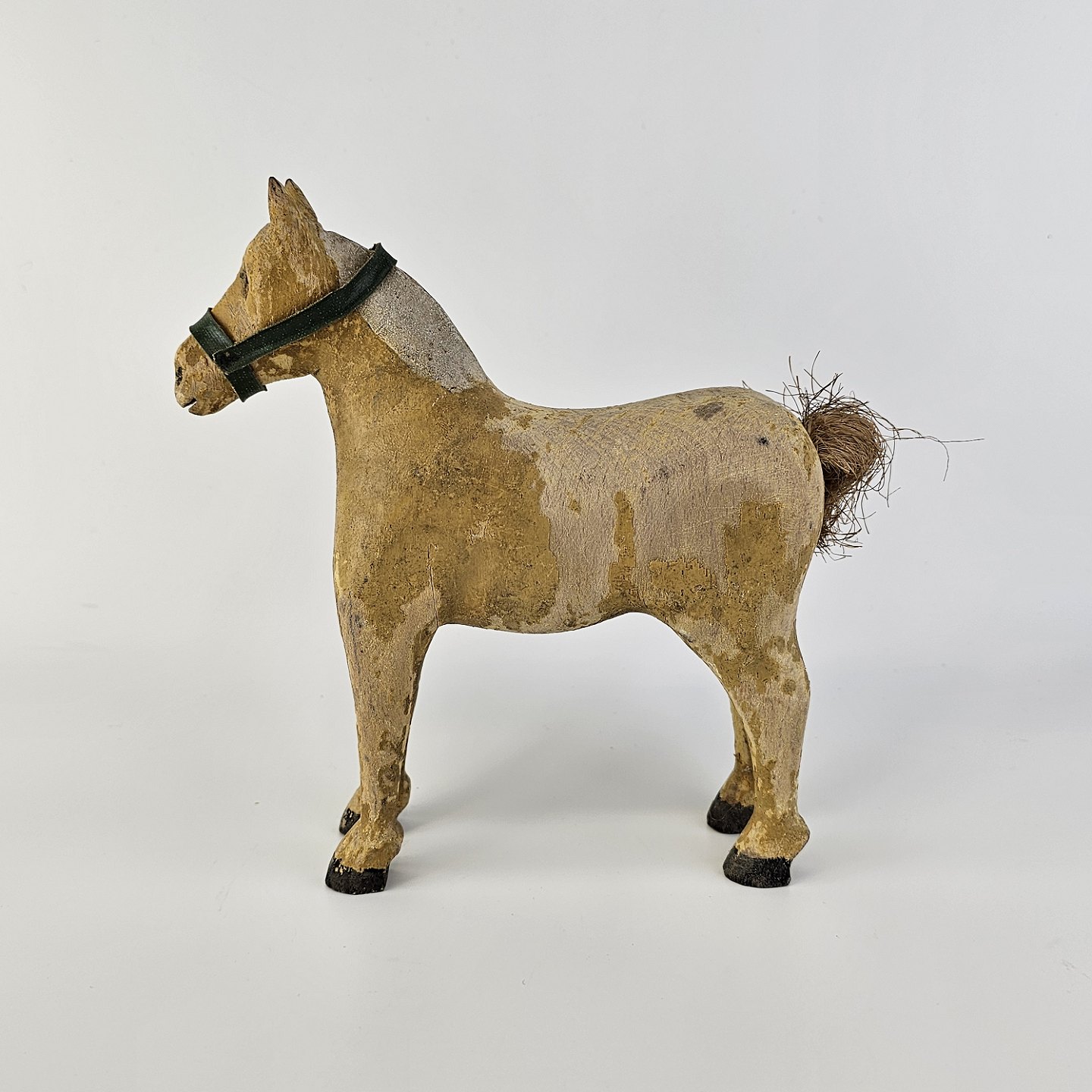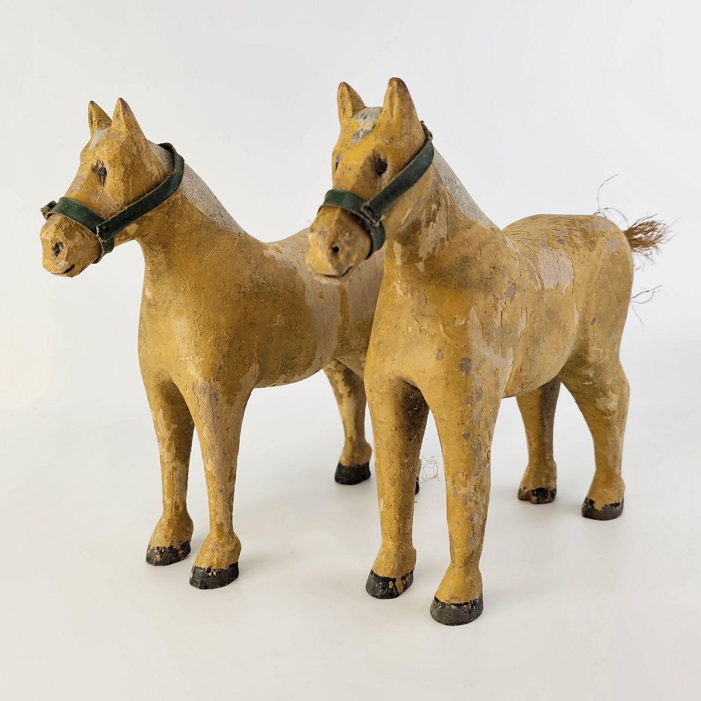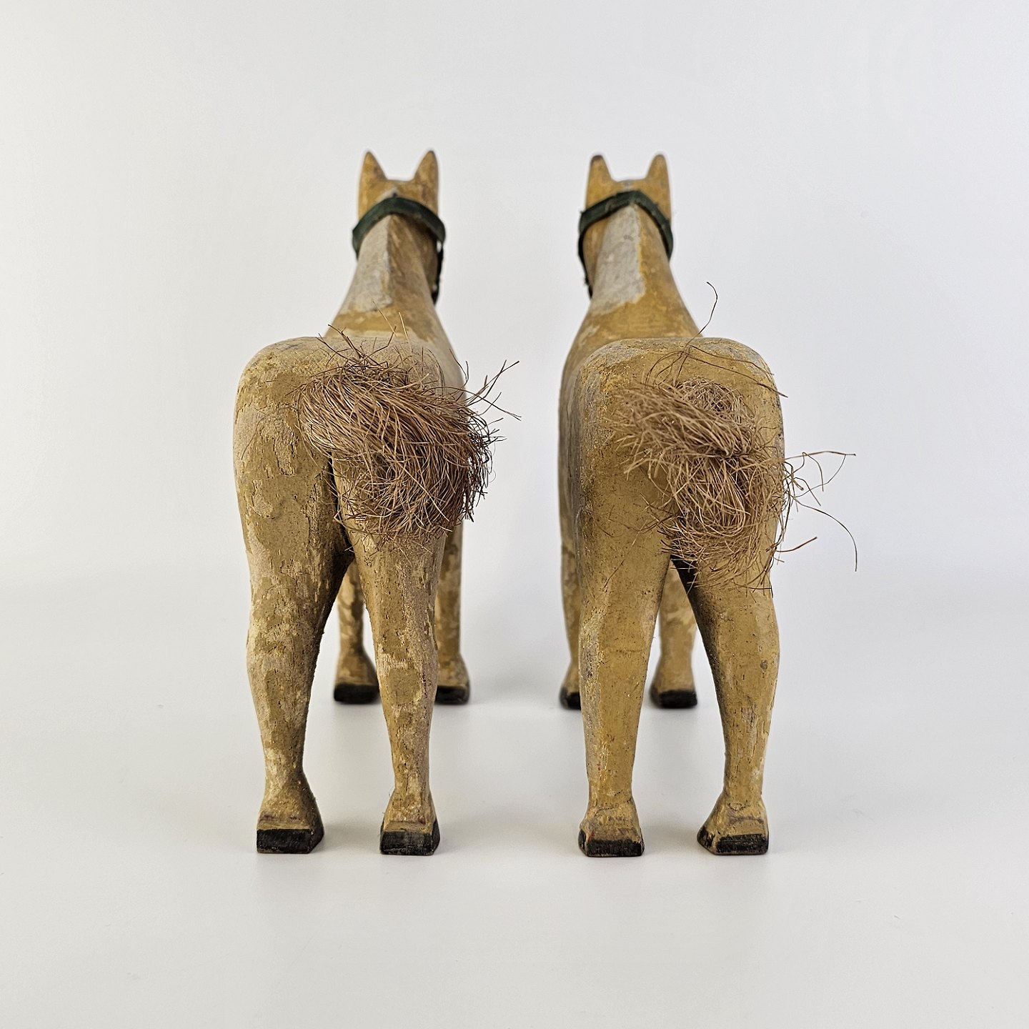 Sæt af to figurer i træ med motiv af heste, formentlig fremstillet som fængselsarbejde. Sælges samlet