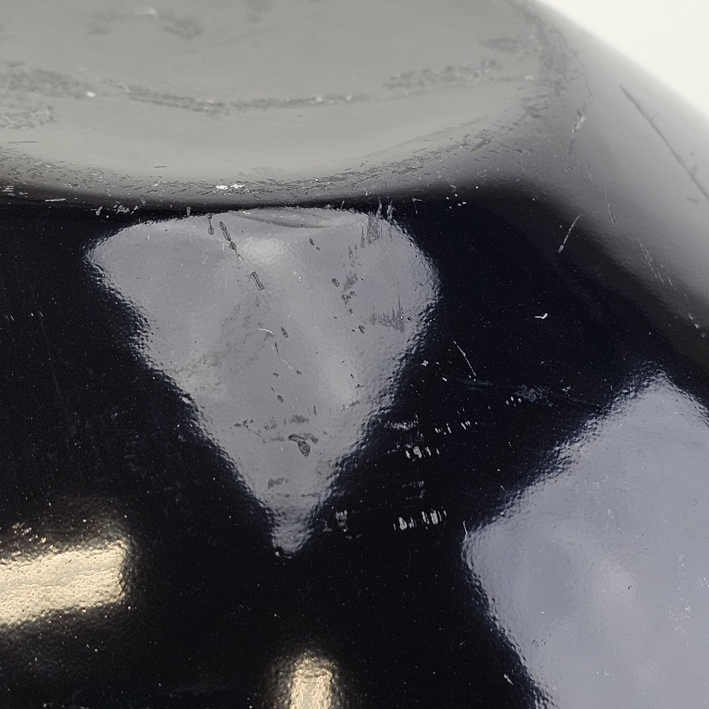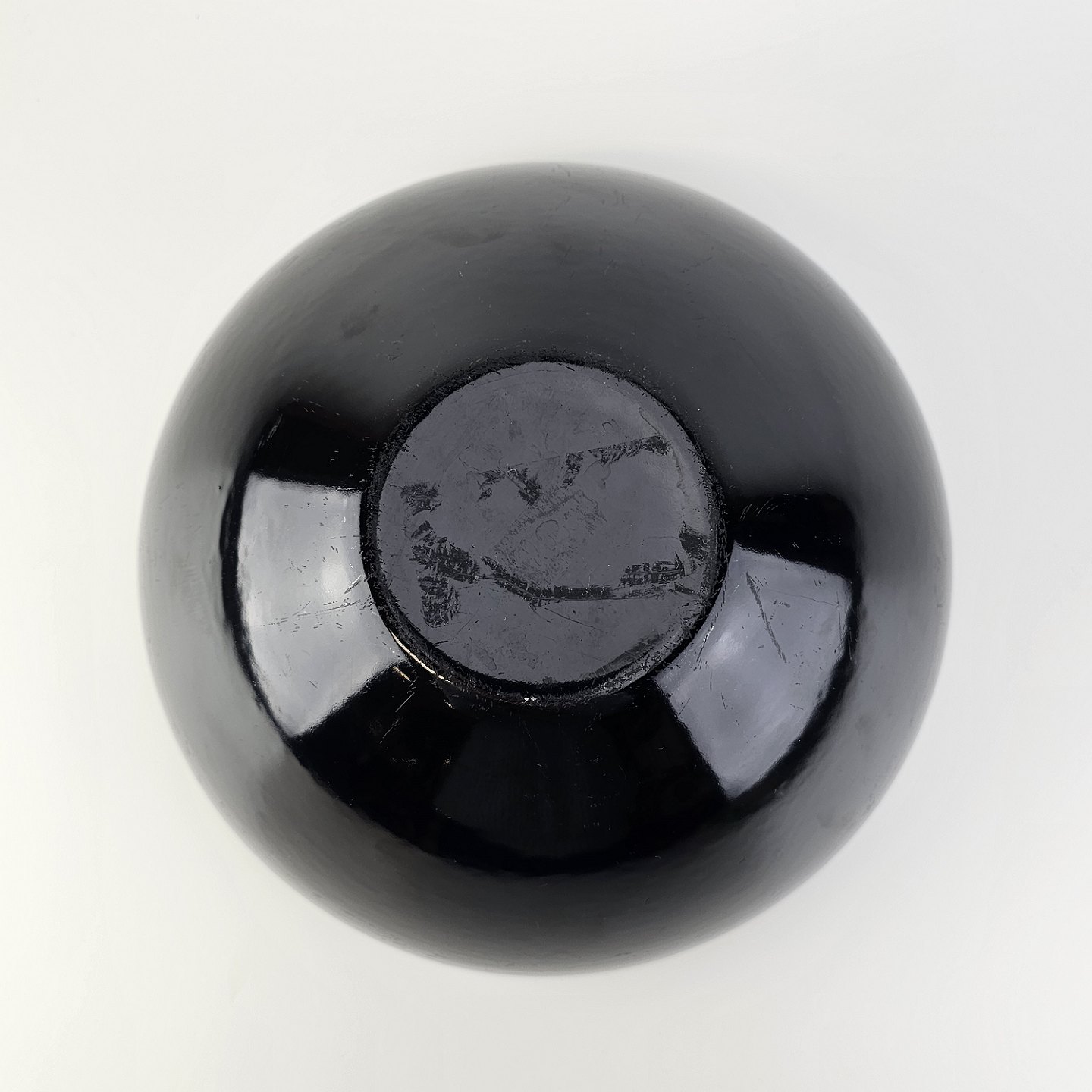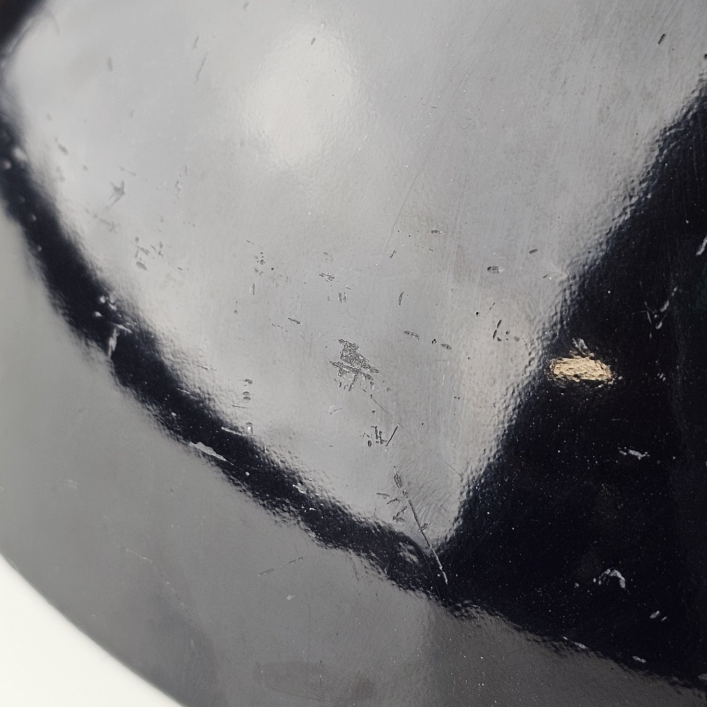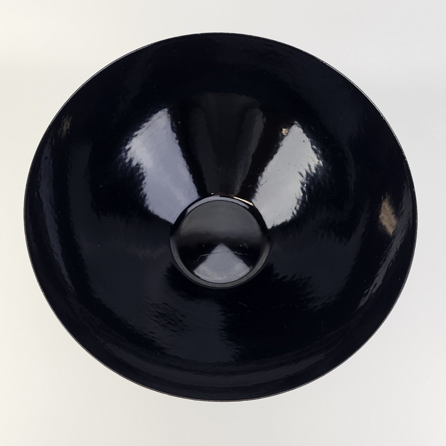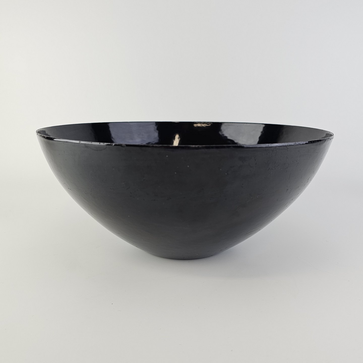 Text zugänglich auf Dänische: Krenit skål af sort metal med sort emalje indvendigt og udvendigt