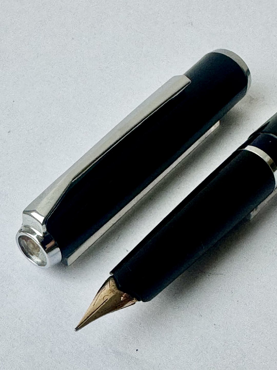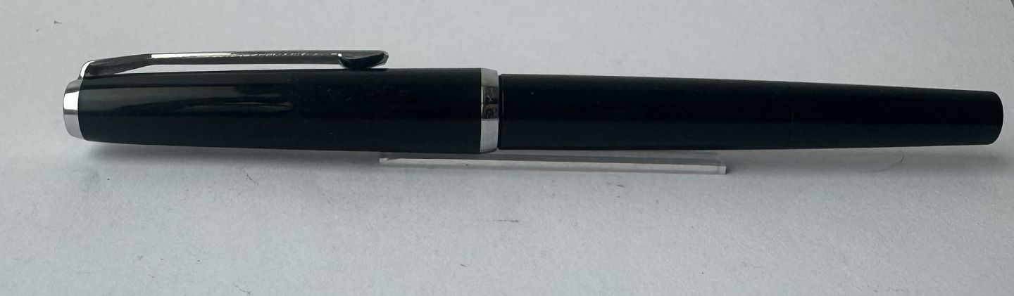 Ældre sort Pelikan Silvexa 20 fyldepen med forkromet dele. Fremstillet i Tyskland i midten af 1960’erne. Der skal indsættes ny refill før end den igen er skrivedygtig. Længde: 13,4 cm