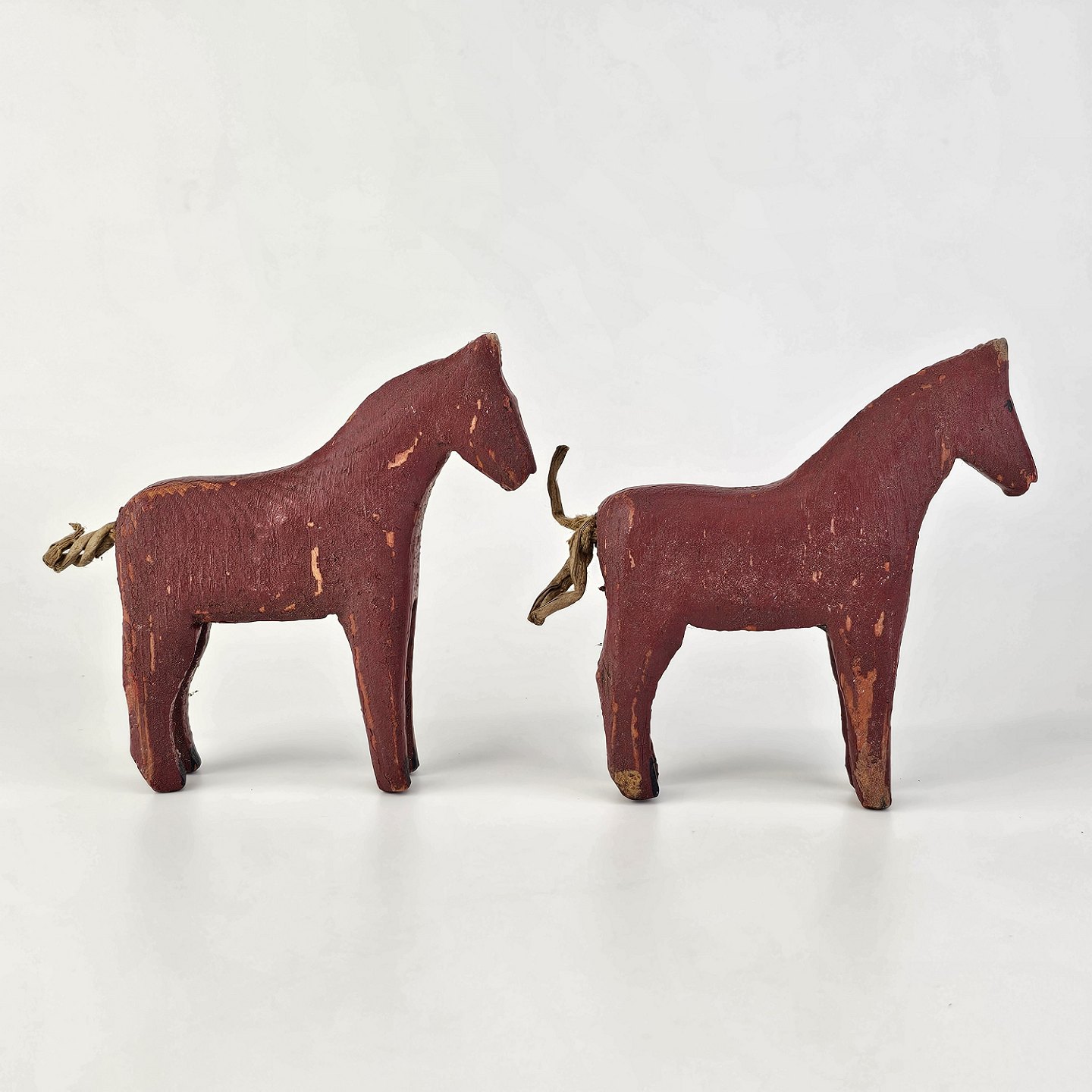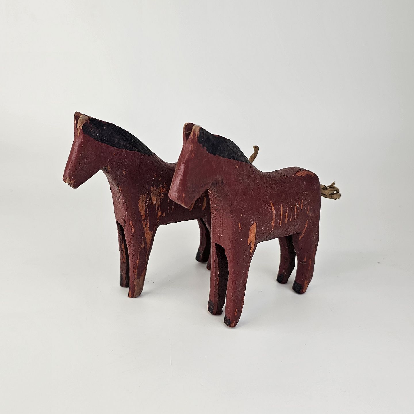 Figurer i malet træ med motiv af heste, formentlig fremstillet som fængselsarbejde