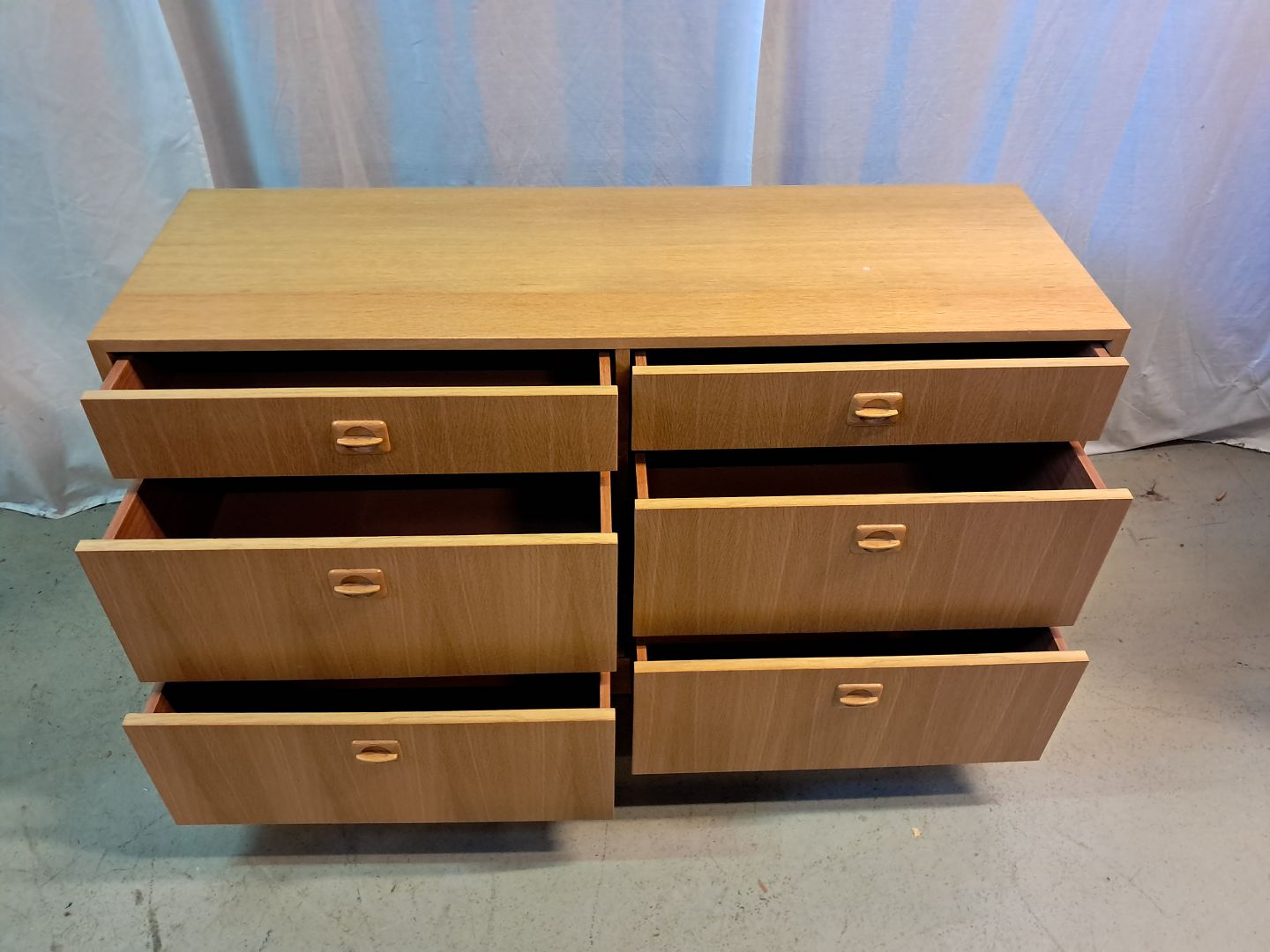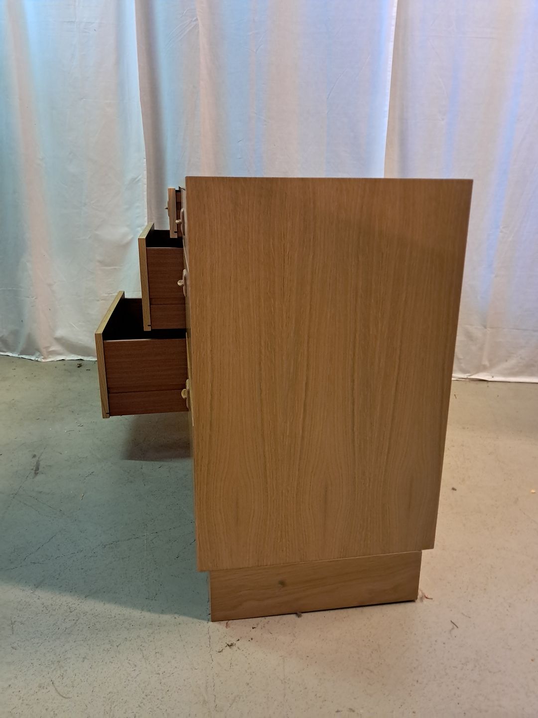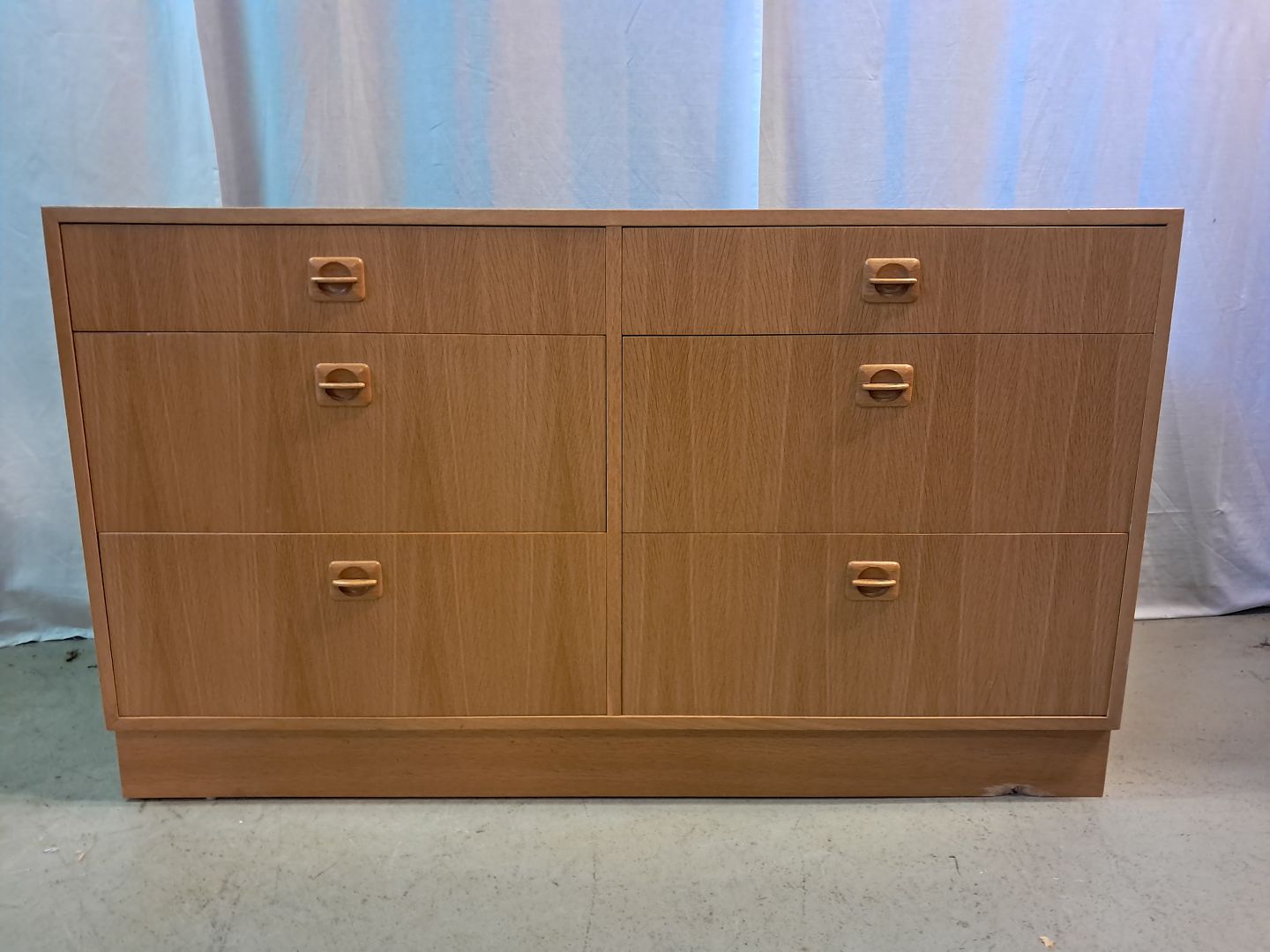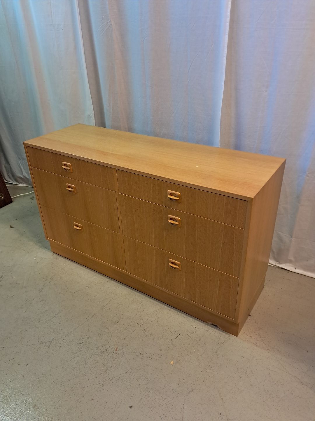 Kommode i fineret egetræ, fra 1980erne.