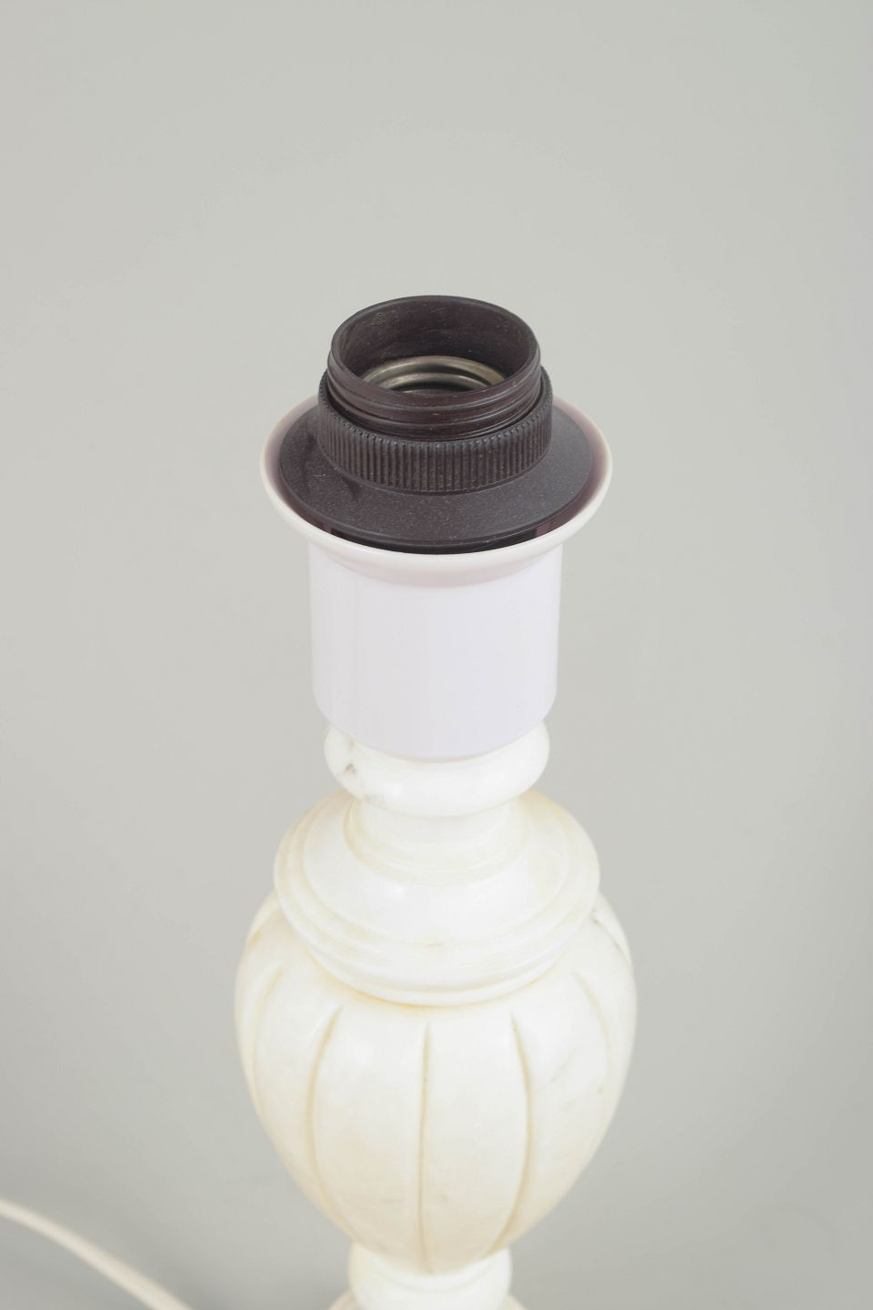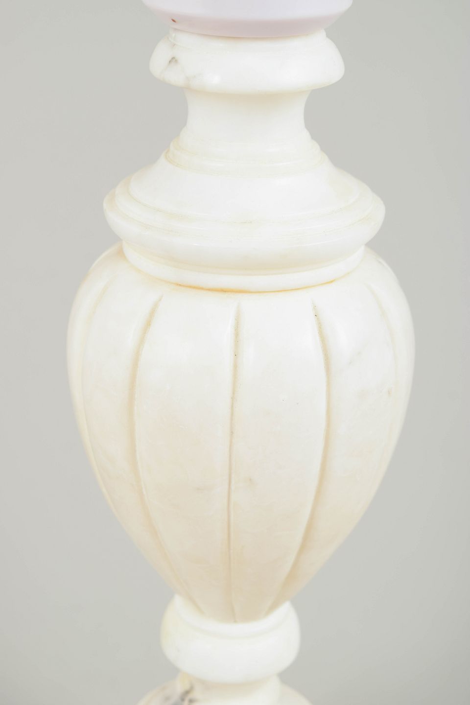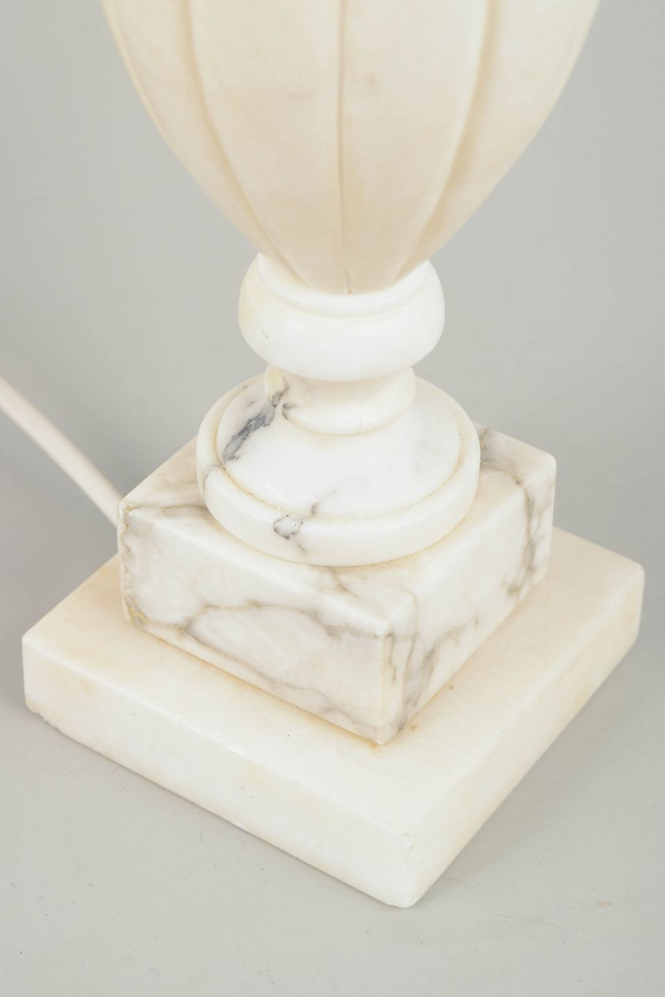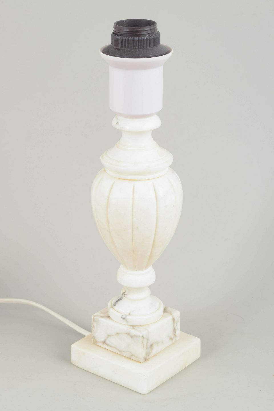Klassisk formet bordlampe udført i hvid marmor med elegant profileret fod og balusterformet korpus. Den matte, naturlige stenstruktur giver lampen et tidløst, sofistikeret udtryk.