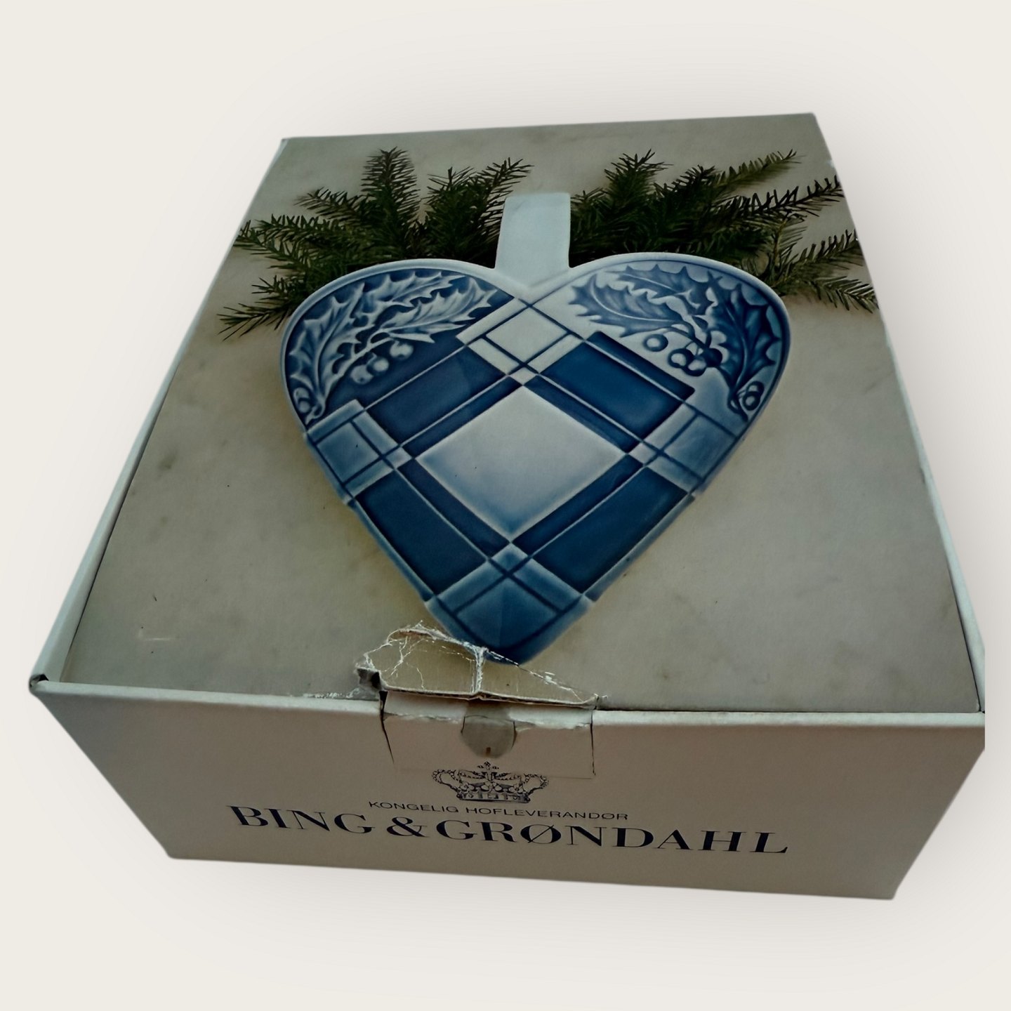 Bing & Grondahl, Weihnachtsherz zum Aufhängen, verziert mit Stechpalmenzweigen, Nr. 9205, Maße 20,5 x 15,5 cm, 1. Wahl in gutem Zustand - in Originalverpackung - dieses Exemplar weist jedoch Gebrauchsspuren auf.