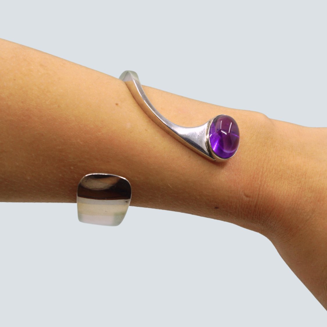Leif Bodh Have; Bangle in sterling silver set with amethyst.