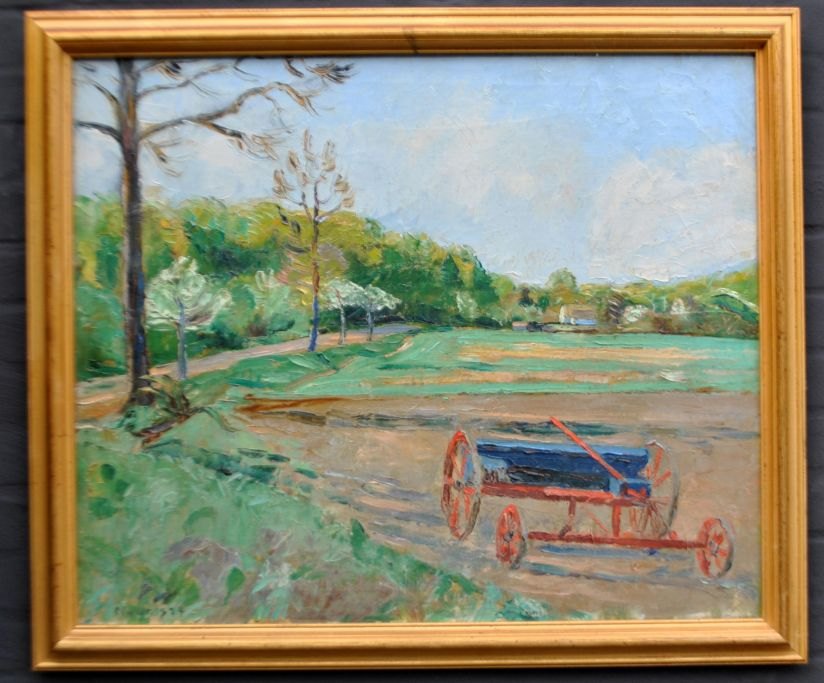 Naur, Albert (1889–1973) Dänemark: Eine Sämaschine auf einem Feld, 1929. Öl auf Leinwand. Signiert: Naur 1929. H: 64 cm. B: 77 cm.