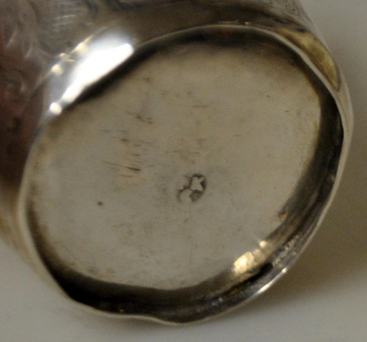 Jens Kieldsen Sommerfeldt (1692–1772), Silberschmied in Aalborg, Dänemark: Silberbecher. Mit Kartusche. Gestempelt. Höhe: 7,5 cm. Gewicht: 79 Gramm.